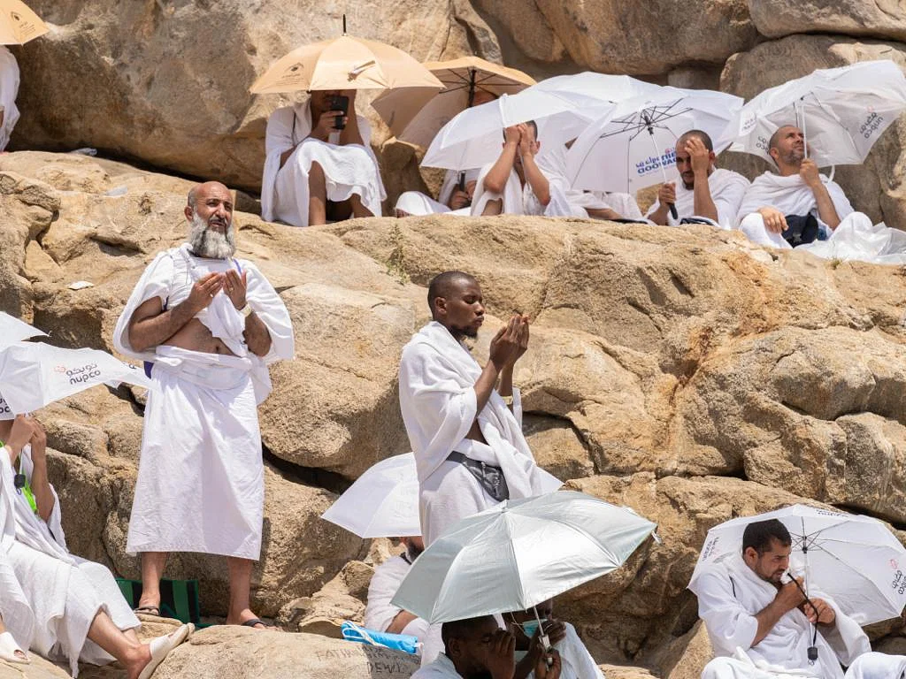 والتقطت الكاميرات مشاهد حيّة من جبل الرحمة الذي اكتسى بالبياض؛ حيث لم يفوّت ضيوف الرحمن الدقائق واللحظات خلال وجودهم على صعيد عرفات الطاهر رافعين أكفهم بالدعوات تسبقها الدموع والأمنيات.
