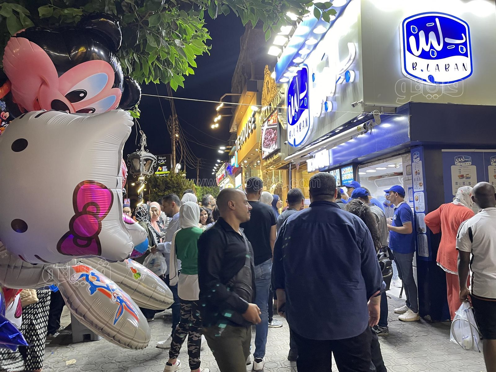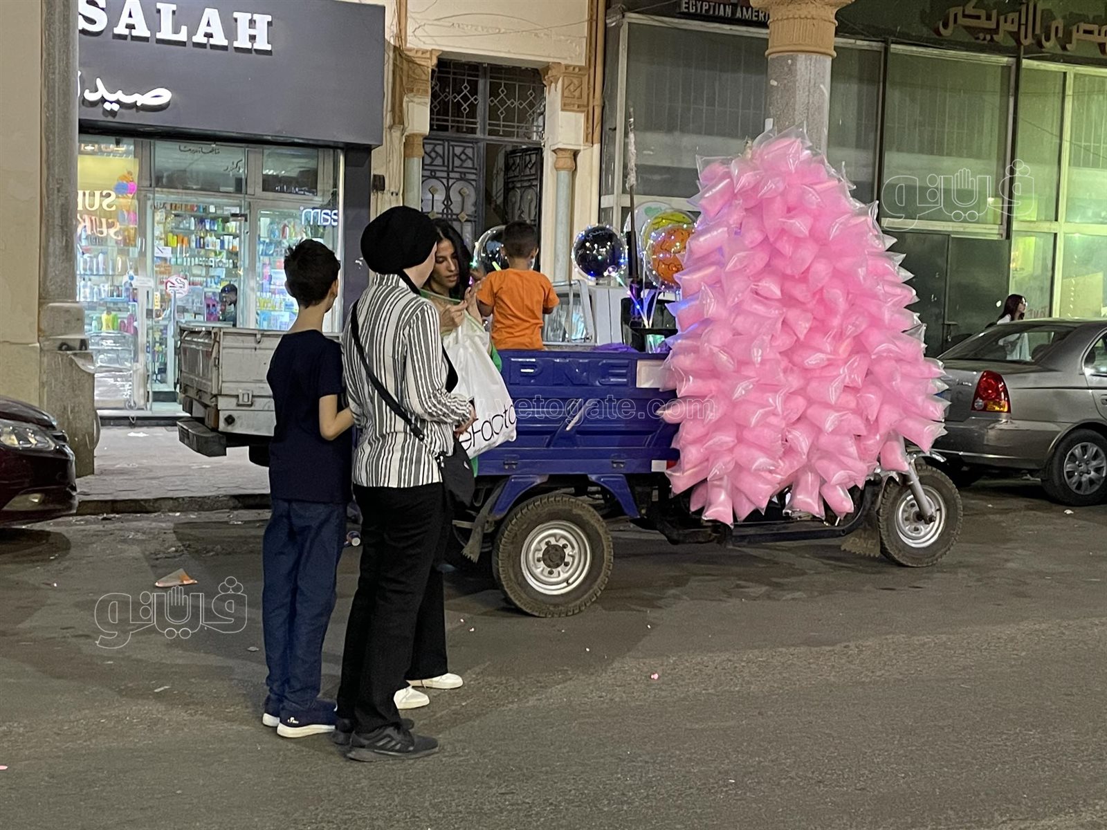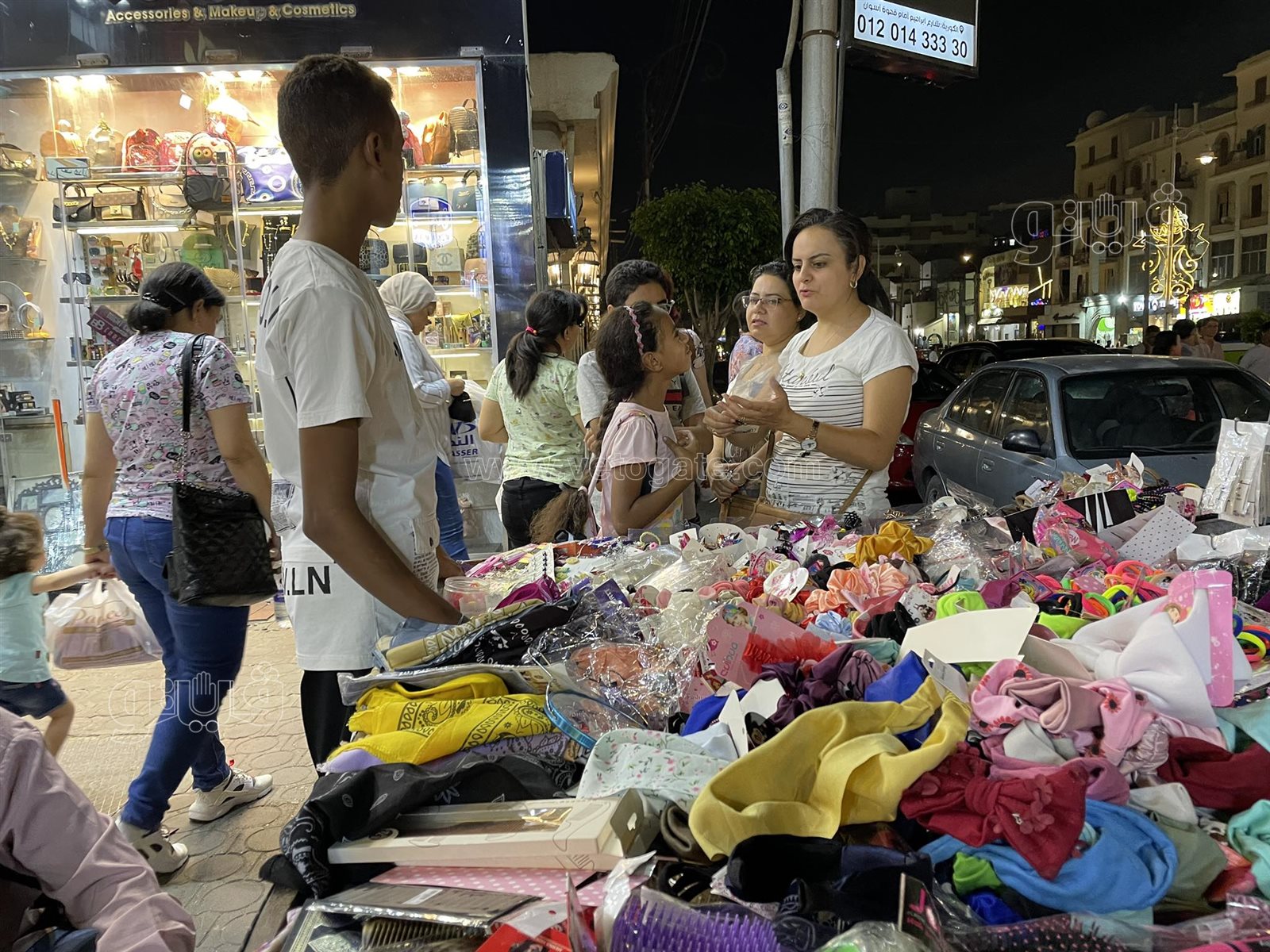 عيد الأضحى، شهدت شوارع مصر الجديدة إقبالًا متوسطًا على محال الملابس والمأكولات السريعة المختلفة في ليلة وقفة عيد الأضحى المبارك.