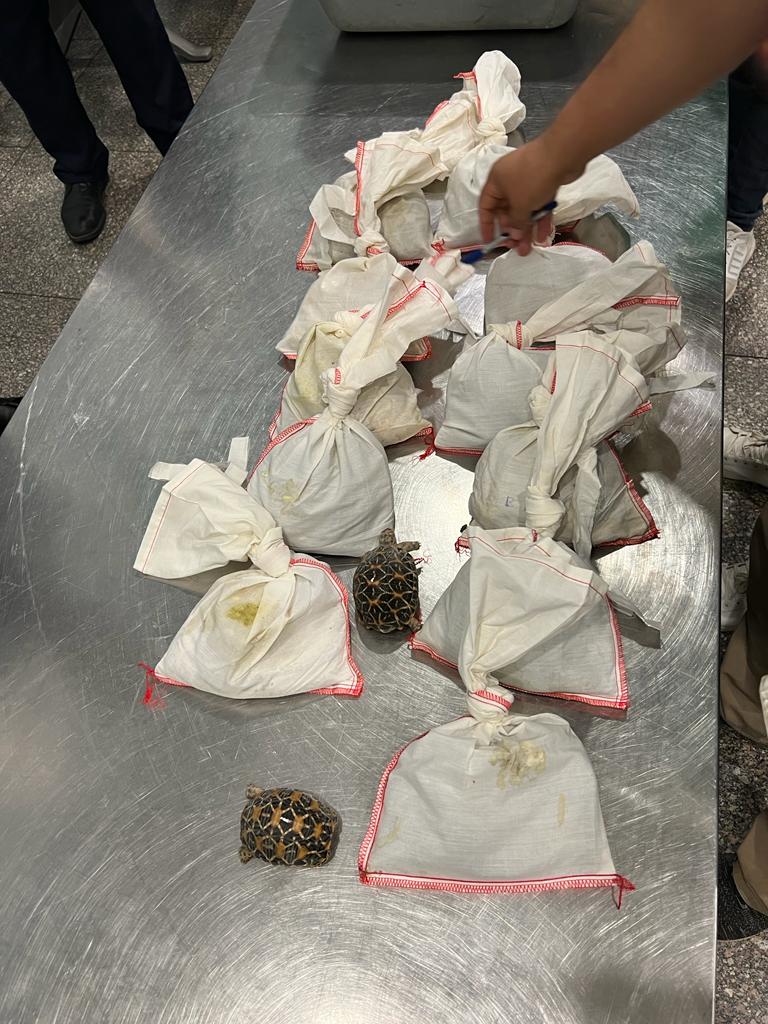 أمر أسامة محمد دياب مدير الإدارة الثالثة بتحرير محضر ضبط جمركي رقم ٧٨ لسنة ٢٠٢٣ ونبه على الراكب بالتوجه إلى حديقة الحيوان لحضور إجراءات فتح الأكياس وعد وتصنيف المضبوطات، تمت الإجراءات بعد العرض على كل من أحمد سعد عبد المطلب مدير عام جمارك الركاب مبنى رقم ٢ والدكتور ماجد موسى رئيس الإدارة المركزية لجمارك مطار القاهرة الدولي.