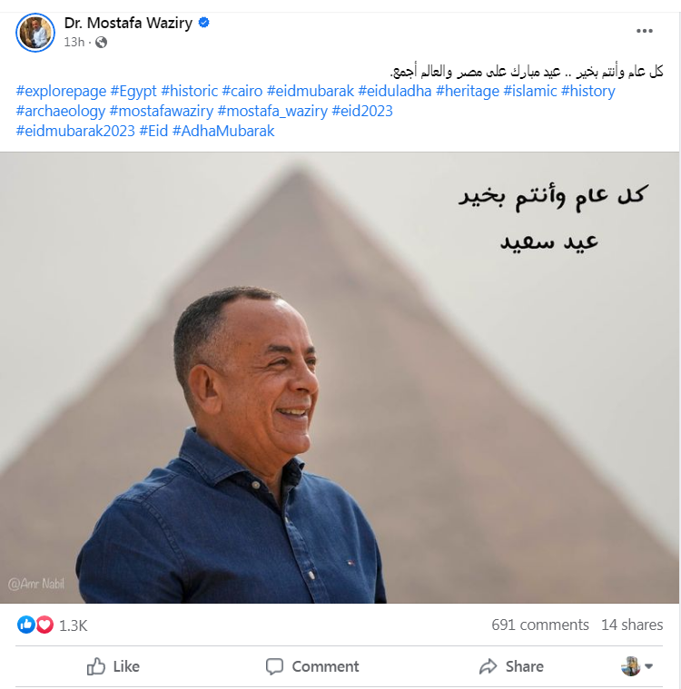 وكتب الدكتور مصطفى وزيري على صفحته الشخصية على موقع التواصل الاجتماعي “فيسبوك”: “كل عام وأنتم بخير.. عيد مبارك على مصر والعالم أجمع”.