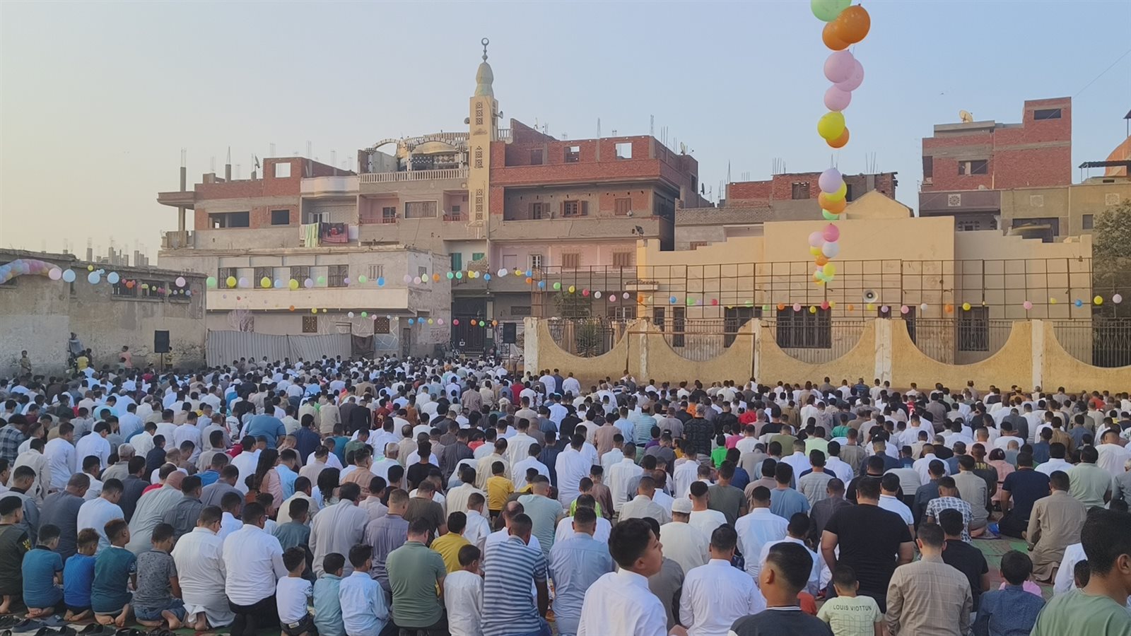 عيد الأضحى المبارك، ارتسمت البسمات ومظاهر الفرحة على وجوه المئات من المواطنين، داخل الساحات المخصصة لصلاة الأضحي المبارك في محافظة الدقهلية، والتي تزينت بالبالونات، وسط أجواء من الفرح والبهجة بين الكبار والأطفال.