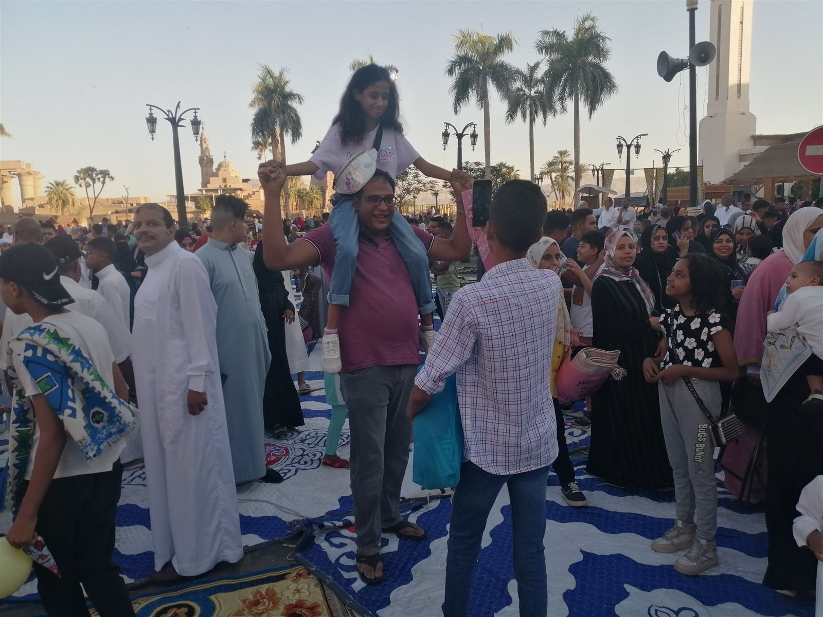 صور سيلفي وضحكات، فرحة أهالي الأقصر بعيد الأضحى في ساحة مسجد سيدي أبو الحجاج (صور)