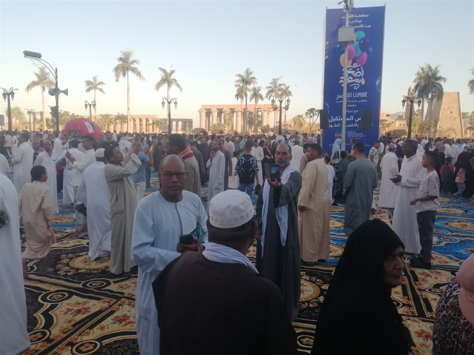 أدى الآلاف من أهالي محافظة الأقصر صلاة عيد الأضحى المبارك، بساحة مسجد سيدي أبو الحجاج الأقصري، وسط أجواء من الفرح والبهجة، والتقاط الصور التذكارية مع أسرهم، والأصدقاء مع بعضهم البعض، بعد أداء الصلاة، والتي حضرها المحافظ المستشار مصطفى ألهم، واللواء خالد عبد الحميد مساعد وزير الداخلية لمنطقة جنوب الصعيد، ومدير أمن الأقصر اللواء هشام عبد الغفار، واللواء الدكتور على الشرابي رئيس مدينة الأقصر، ومدير مديرية الأوقاف بمحافظة الأقصر الشيخ سيد محمد عبد الدايم.