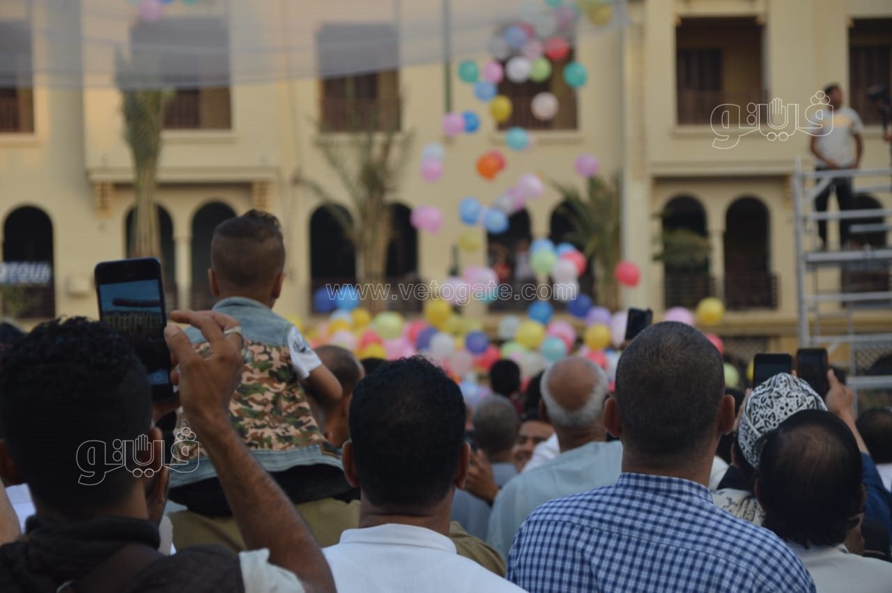 حيث ذهبت الأسر بصحبة أطفالهم في أول أيام عيد الأضحي المبارك لأداء صلاة العيد واحتفلوا بعد ذلك بتطيير البلالين في الهواء الإمساك بها بصحبة صغارهم لإدخال البهجة والسرور على قلوب جميع المتواجدين بالساحة من صغار وكبار.