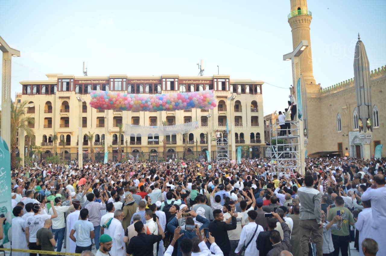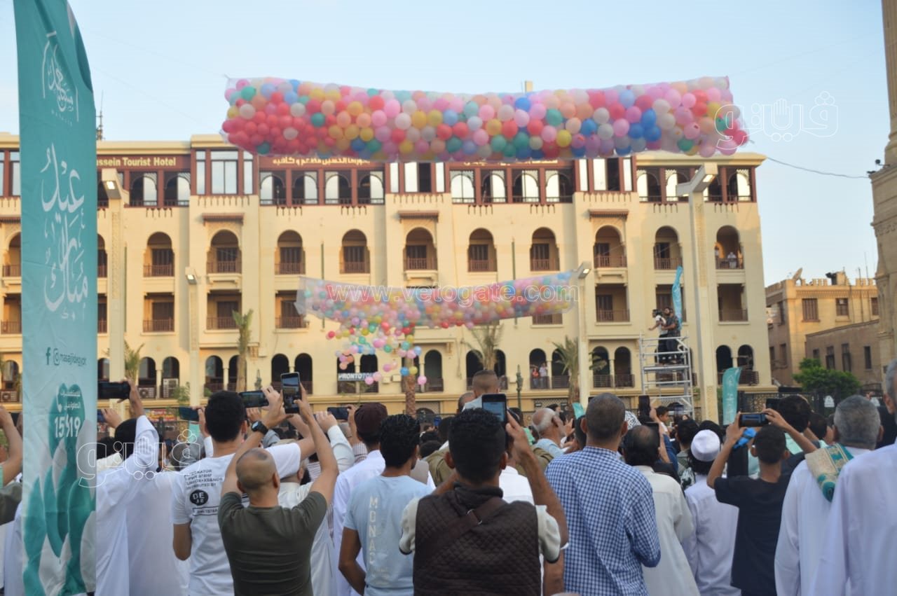 المصريون يحتفلون بتطيير البلالين بساحة مسجد الحسين (فيديو وصور)