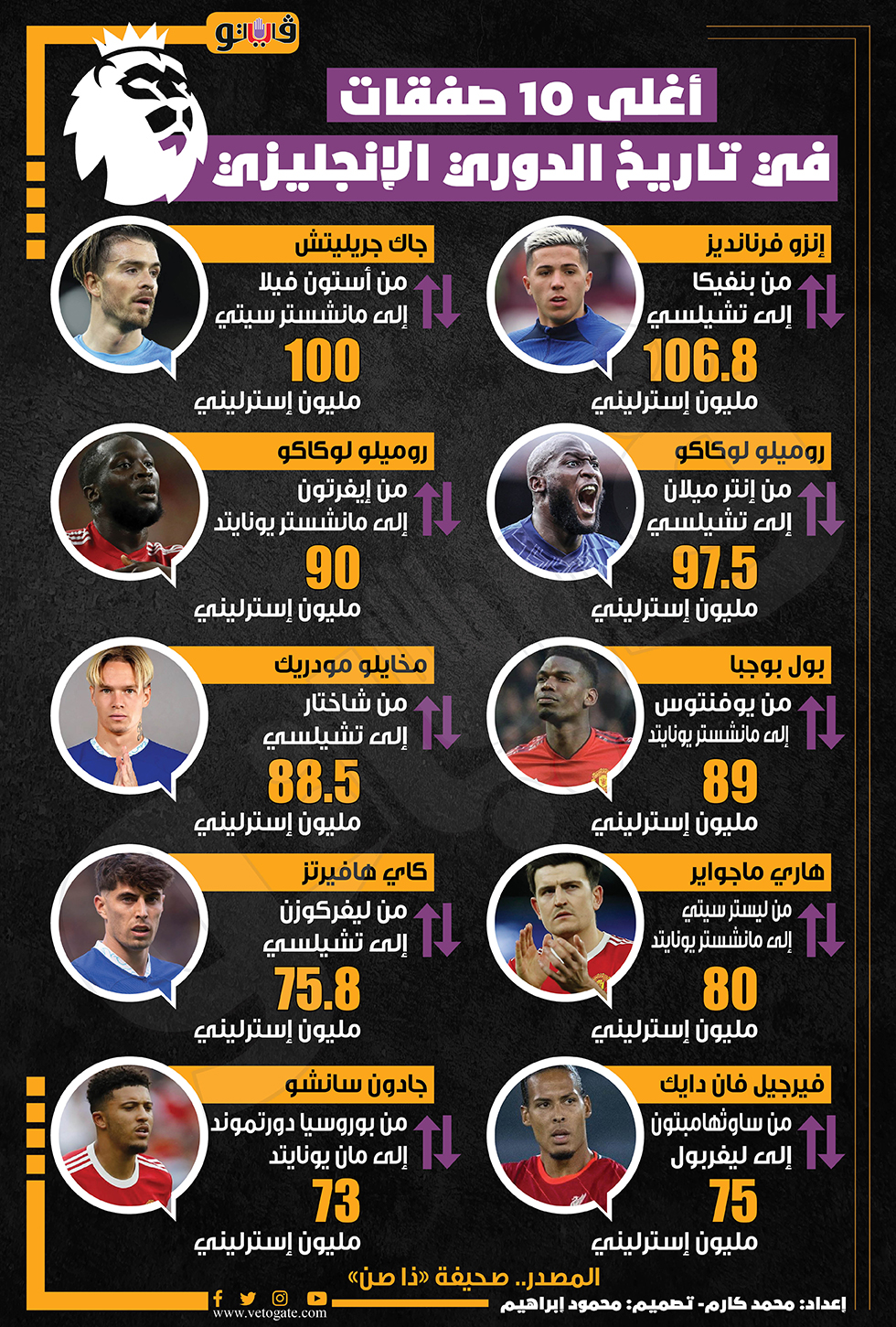 أغلى 10 صفقات في تاريخ الدوري الإنجليزي (إنفوجراف) الأربعاء 28/يونيو/2023 - 06:47 م 6/28/2023 6:47:20 PM إنزو فرنانديز محمد كارم شارك طباعة 18 حجم الخط شارك طباعة أغلى 10 صفقات تاريخ الدوري الإنجليزي أغلي 10 صفقات فى تاريخ الدوري الإنجليزي الدوري الانجليزي