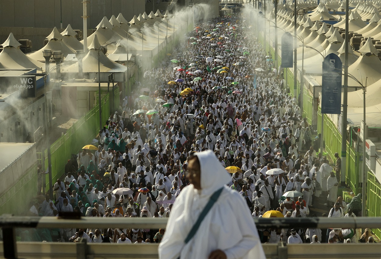ينطلق الحجيج قبل طلوع الشمس إلى منى ملبيين وعليهم السكينة.