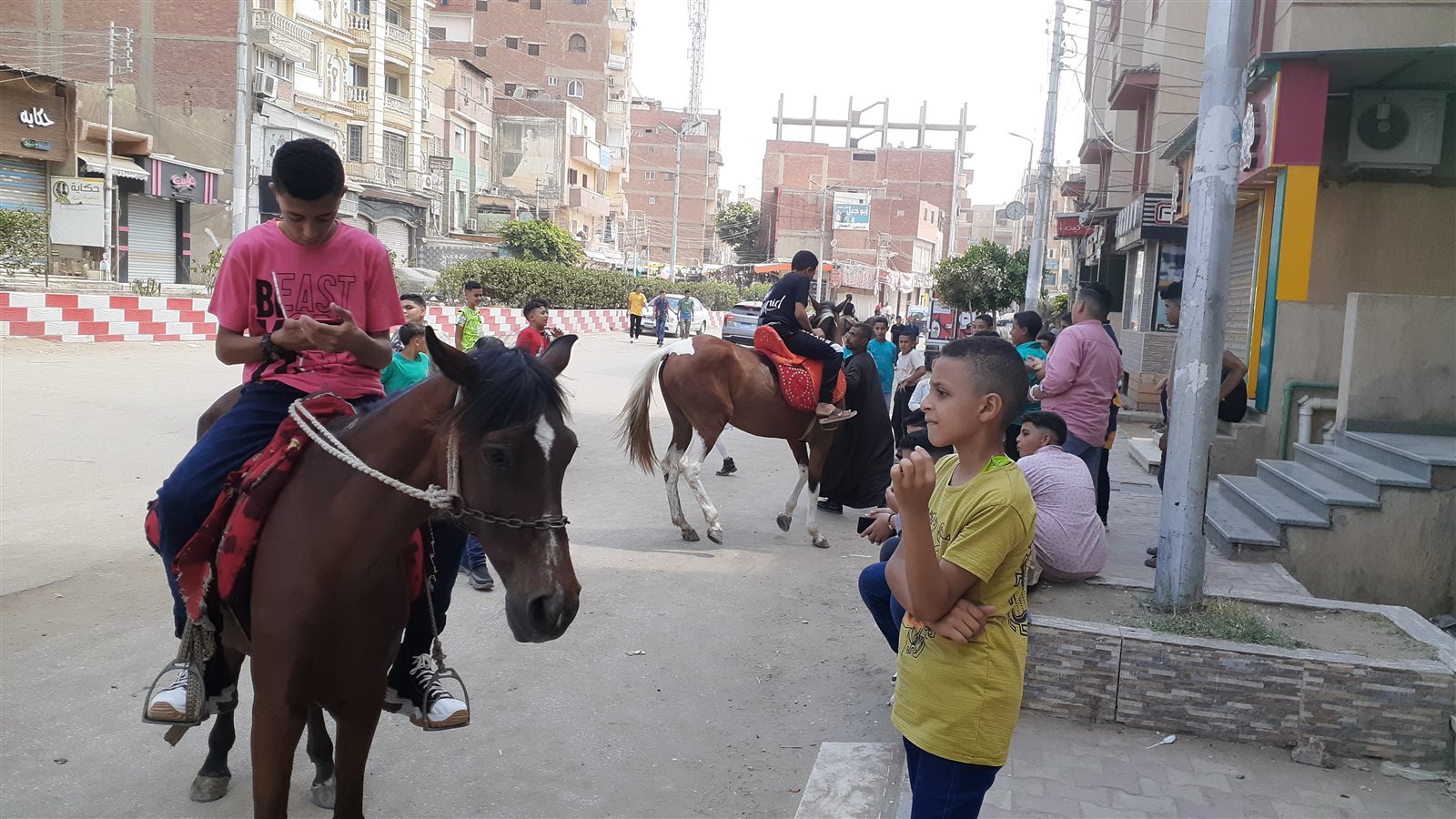 يحرص الآلاف من أبناء قرى ومدن محافظة الغربية على الخروج فى الأماكن العامة والمتنزهات والأماكن المخصصة للملاهى للاحتفال بالعيد لكن هناك من لهم هواية أخرى من الصغار وهي هواية ركوب الخيل حيث يجدون فيها هوايتهم وفسحتهم وفرصة للتصوير.