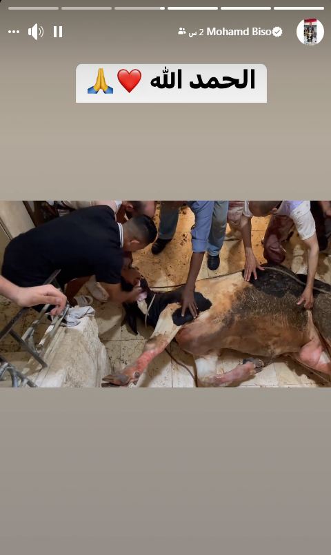 كما نشر محمد حسام بيسو لاعب الفريق الأول لكرة القدم بنادي الزمالك، عبر حسابه فيديو وهو يقوم بذبح الأضحية.