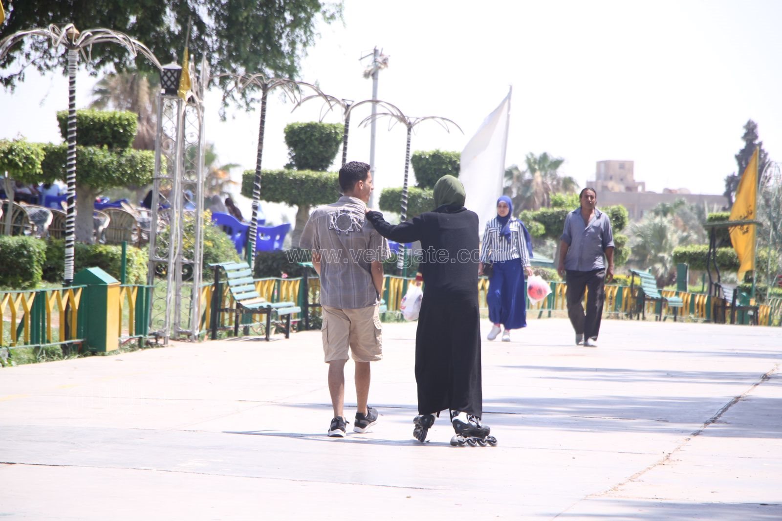 كما تصدرت العائلات المشهد في منتصف نهار اليوم الأول من عيد الأضحى حيث استمتعوا معًا بافتراش الأرض وتناول الأطعمة سويًا، بينما اختار الشباب اللعب "بالأسكت" والكرة في ممرات الحديقة المتسعة.