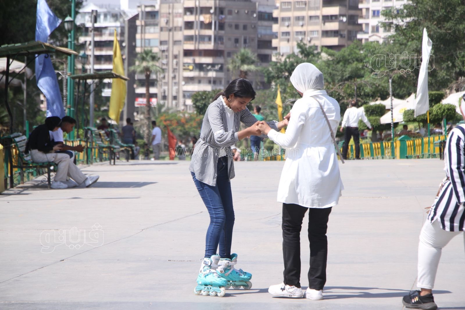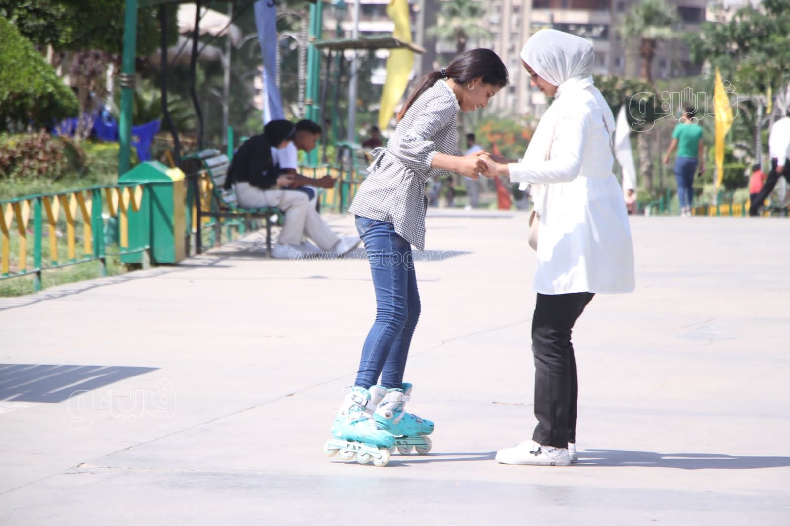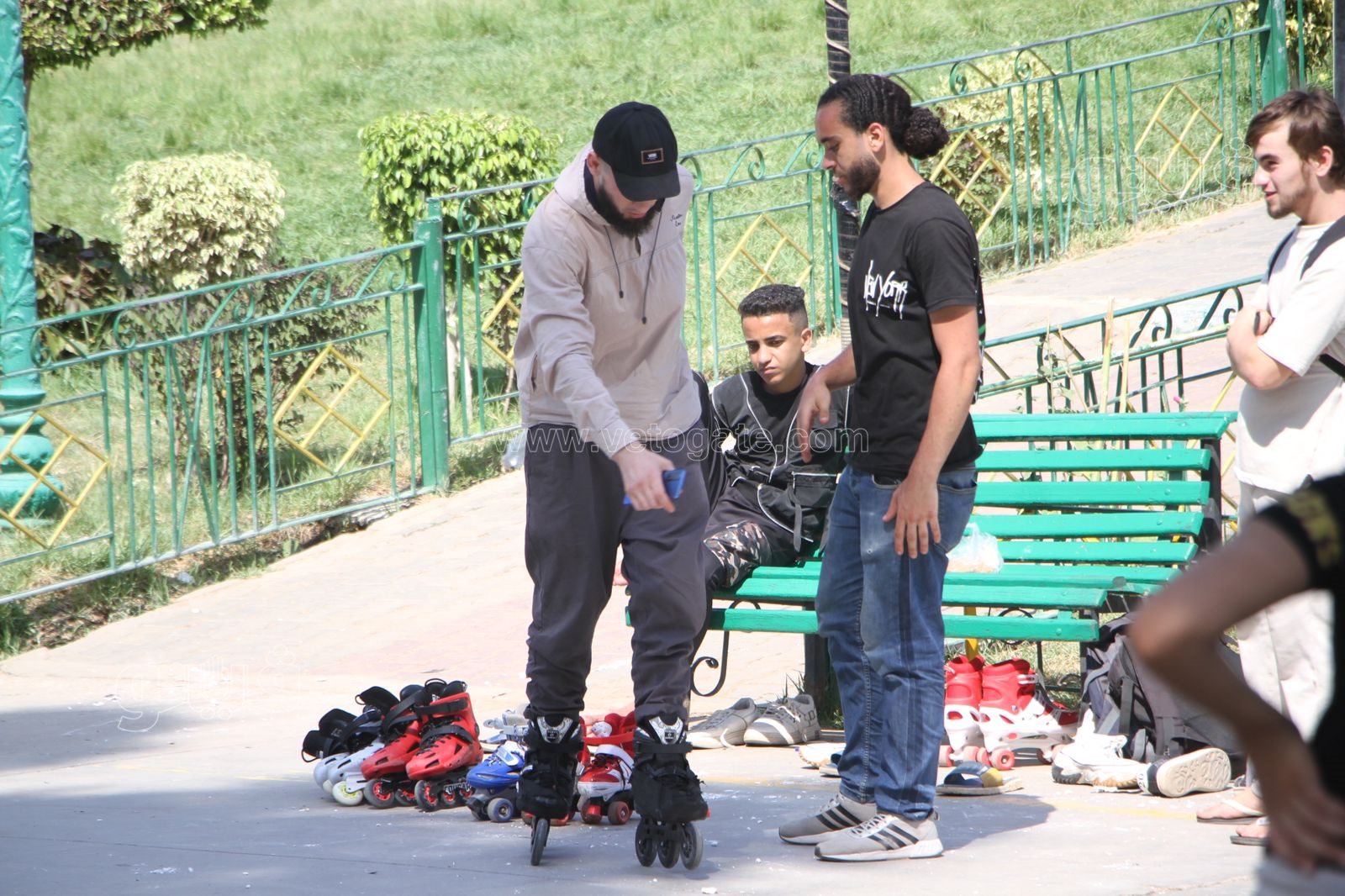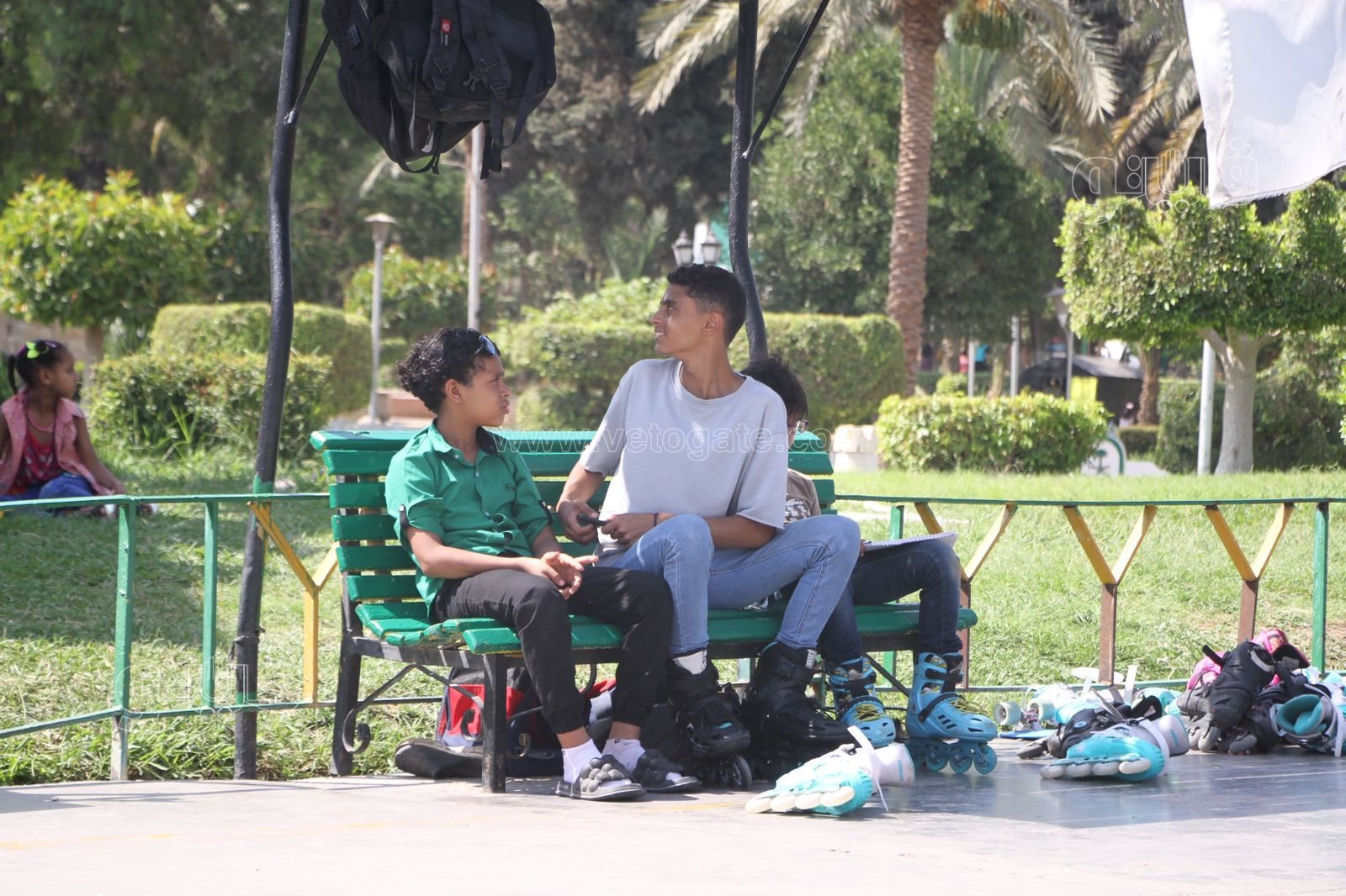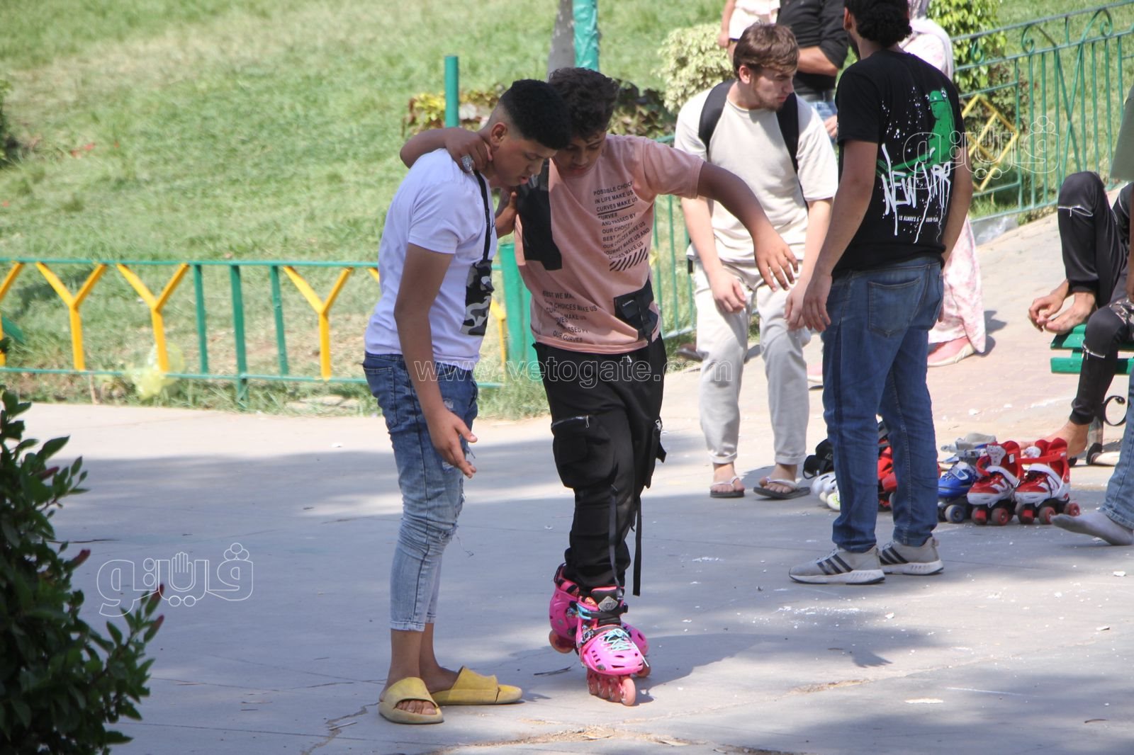 كما تصدرت العائلات المشهد في منتصف نهار اليوم الأول من عيد الأضحى حيث استمتعوا معًا بافتراش الأرض وتناول الأطعمة سويًا، بينما اختار الشباب اللعب "بالاسكيت" والكرة في ممرات الحديقة المتسعة.