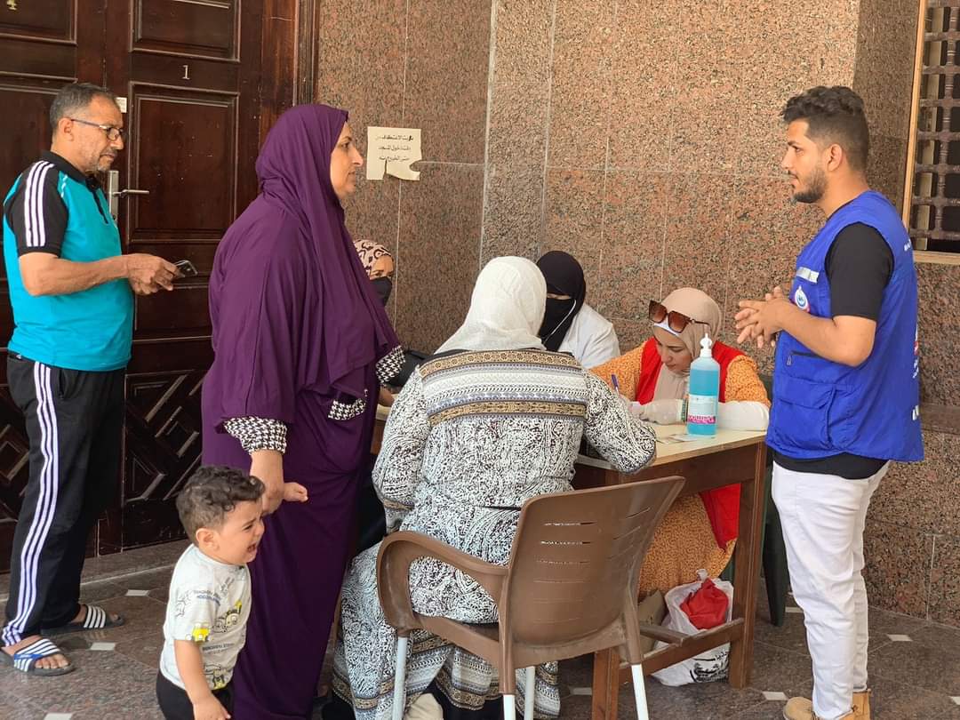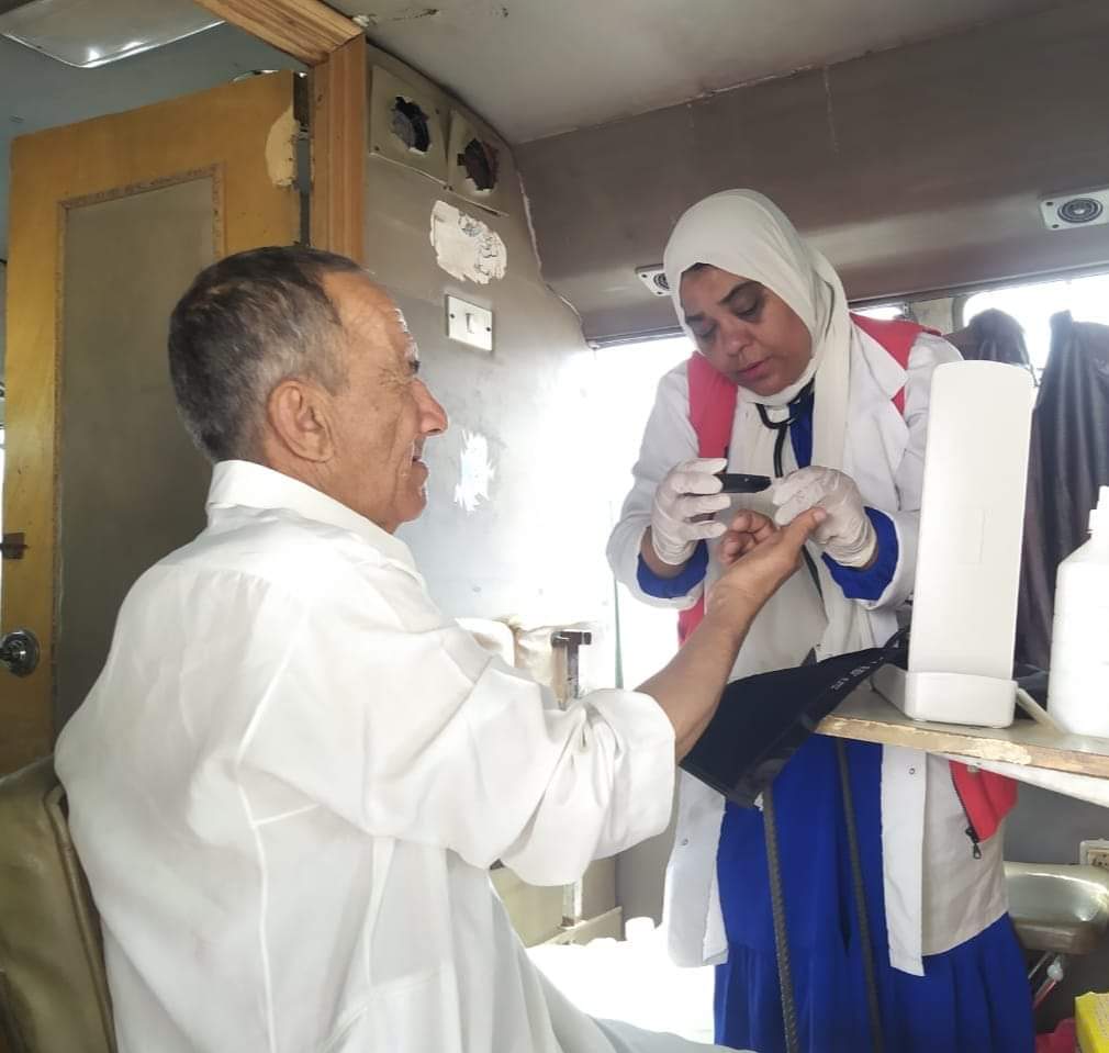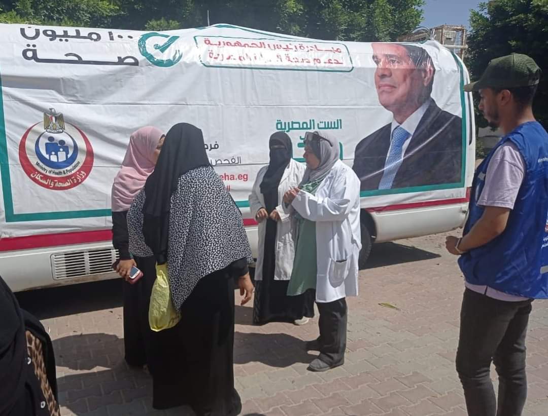 وتمركزت الفرق الطبية التابعة لمبادرة 100 يوم صحة أمام المساجد وبأماكن تجمع المواطنين وذلك لإتاحة الكشف والفحص بكافة المواطنين من مختلف الأعمار.