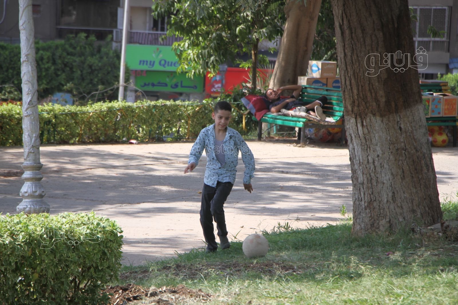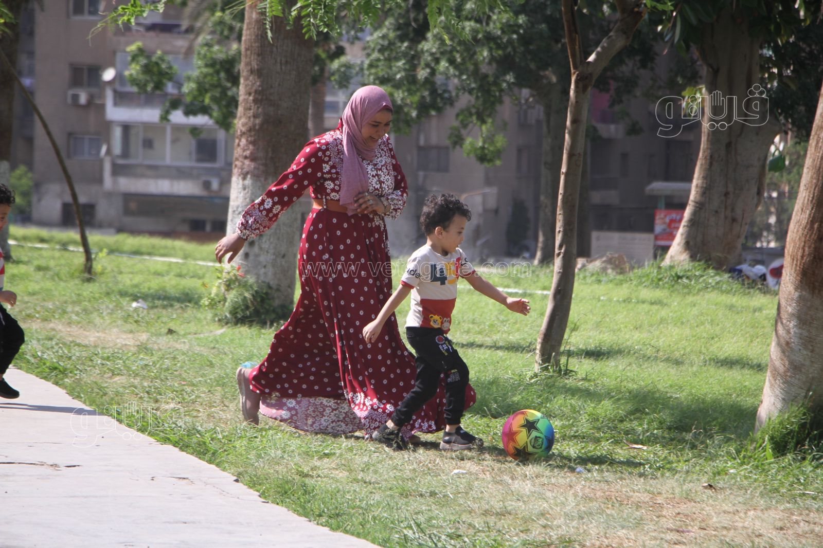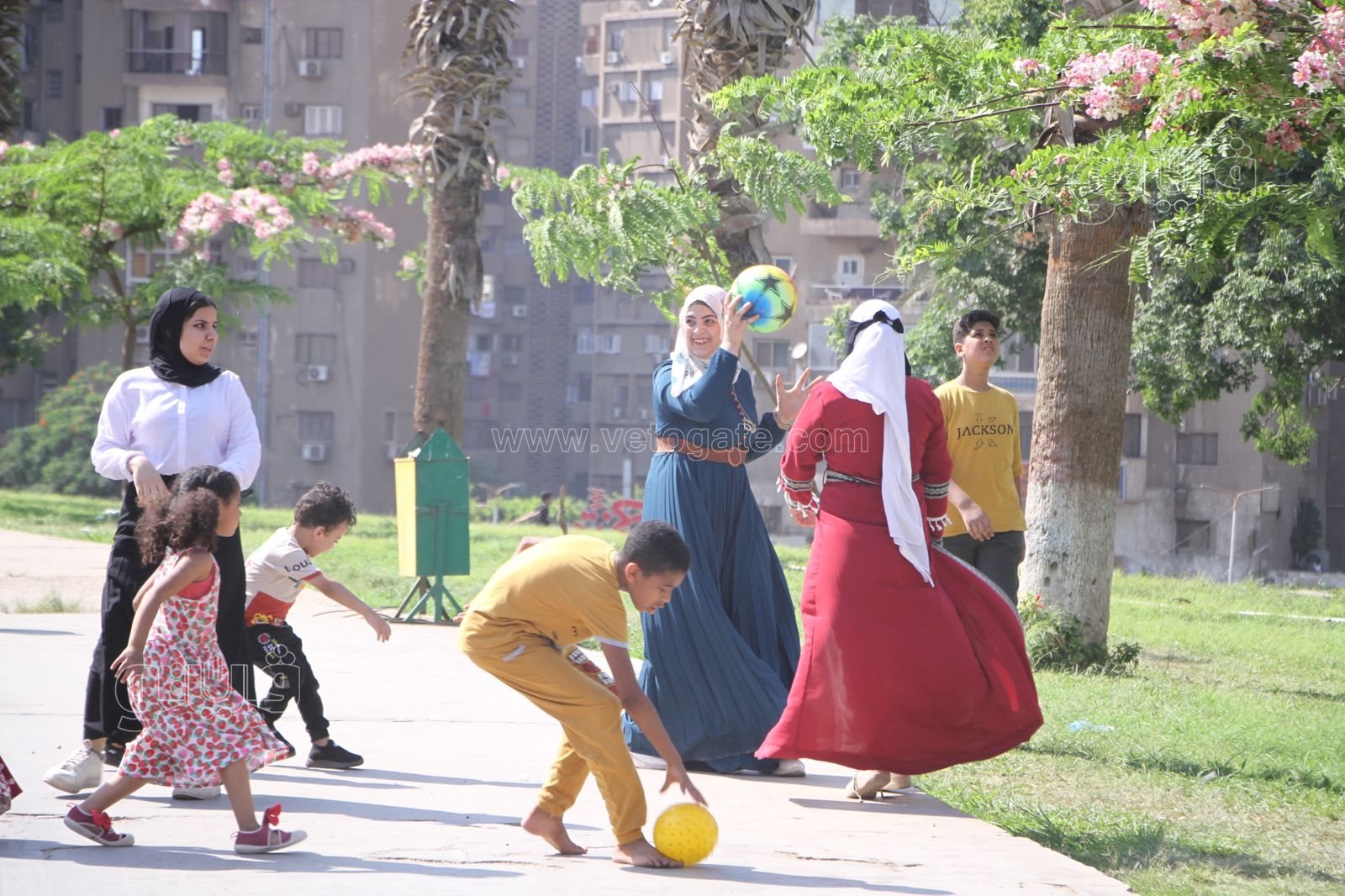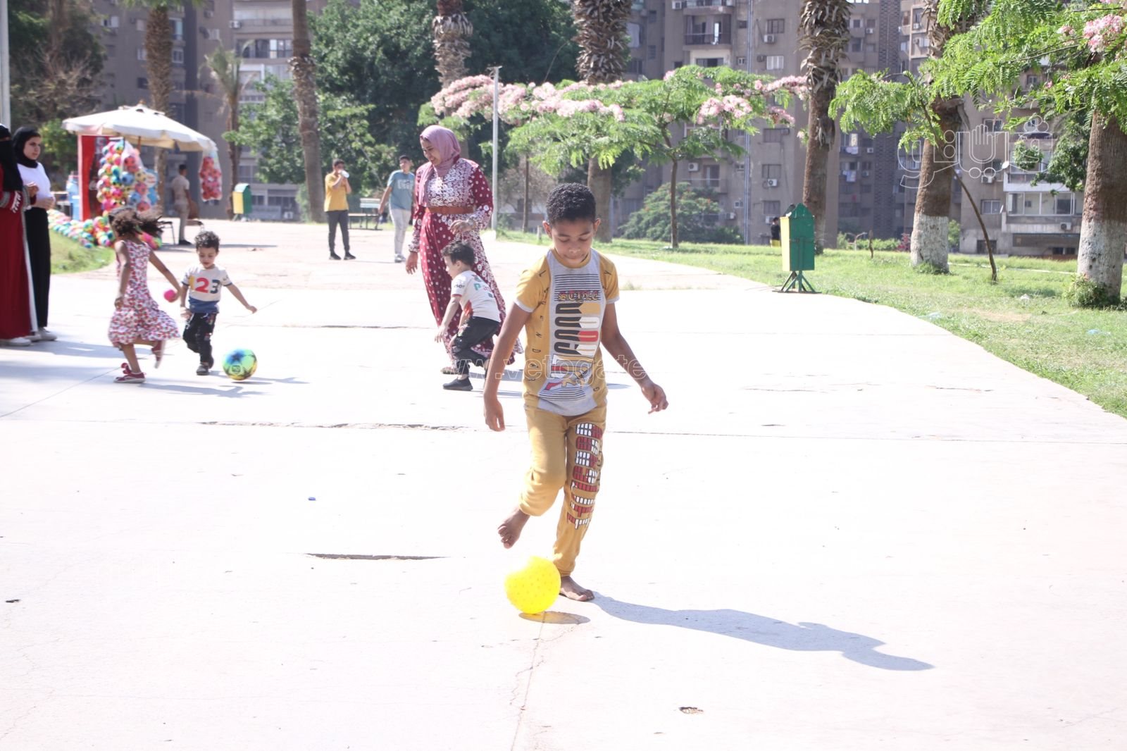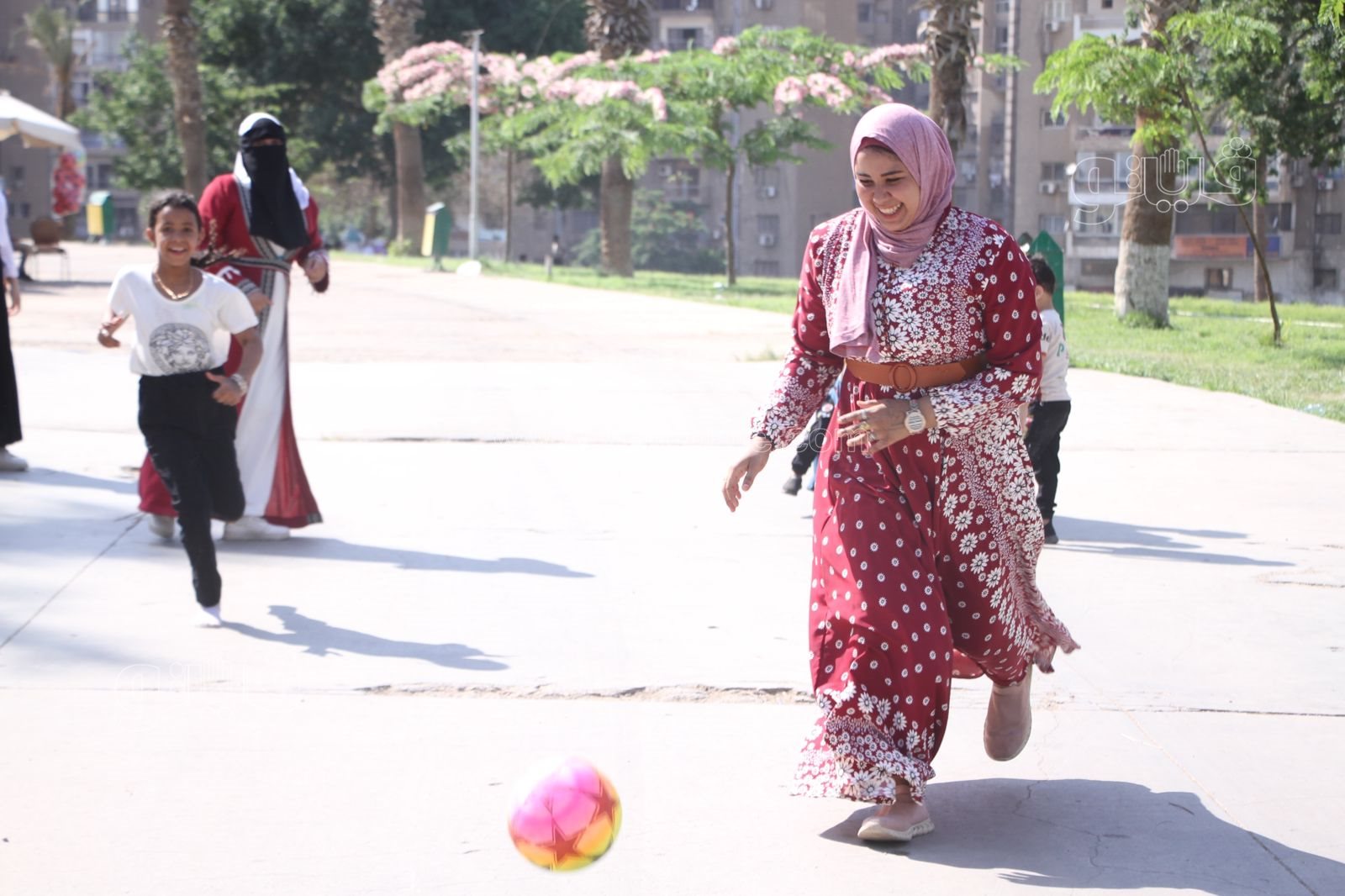اللعب بالكرة للصغار والكبار بالحديقة الدولية في أولى أيام عيد الأضحى (صور)