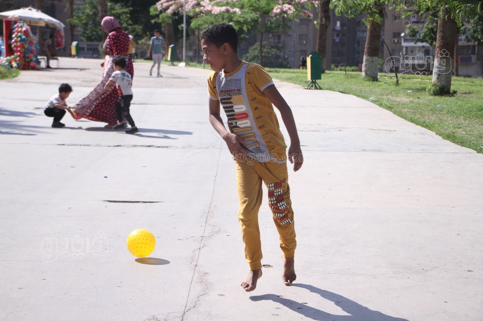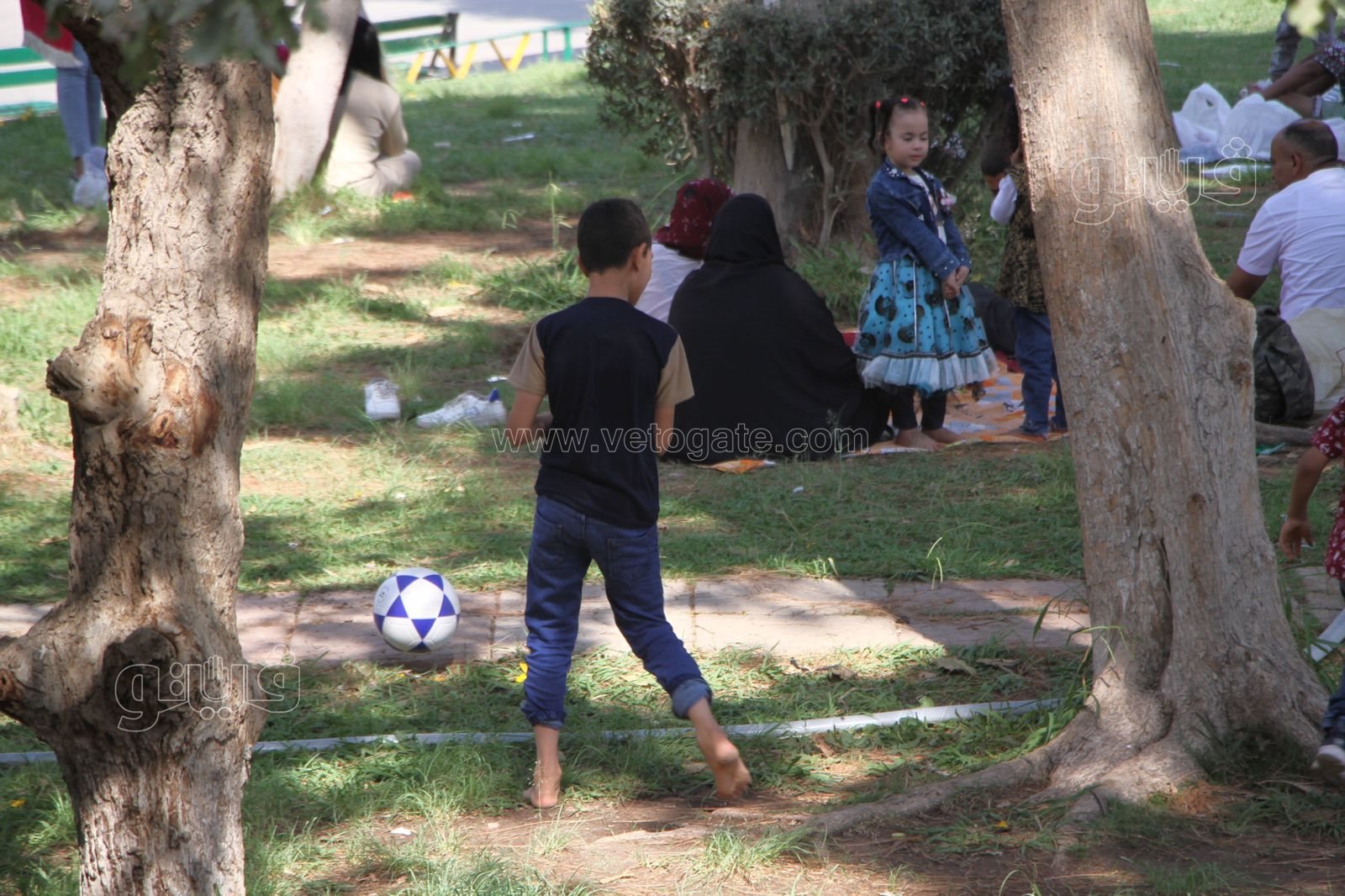 لم يكن لعب كرة القدم حكرا على الأطفال في الحديقة الدولية بل شارك الكبار والشباب في اللعب بالكرة في جو حافل بالفرحة في أولى أيام عيد الأضحى.