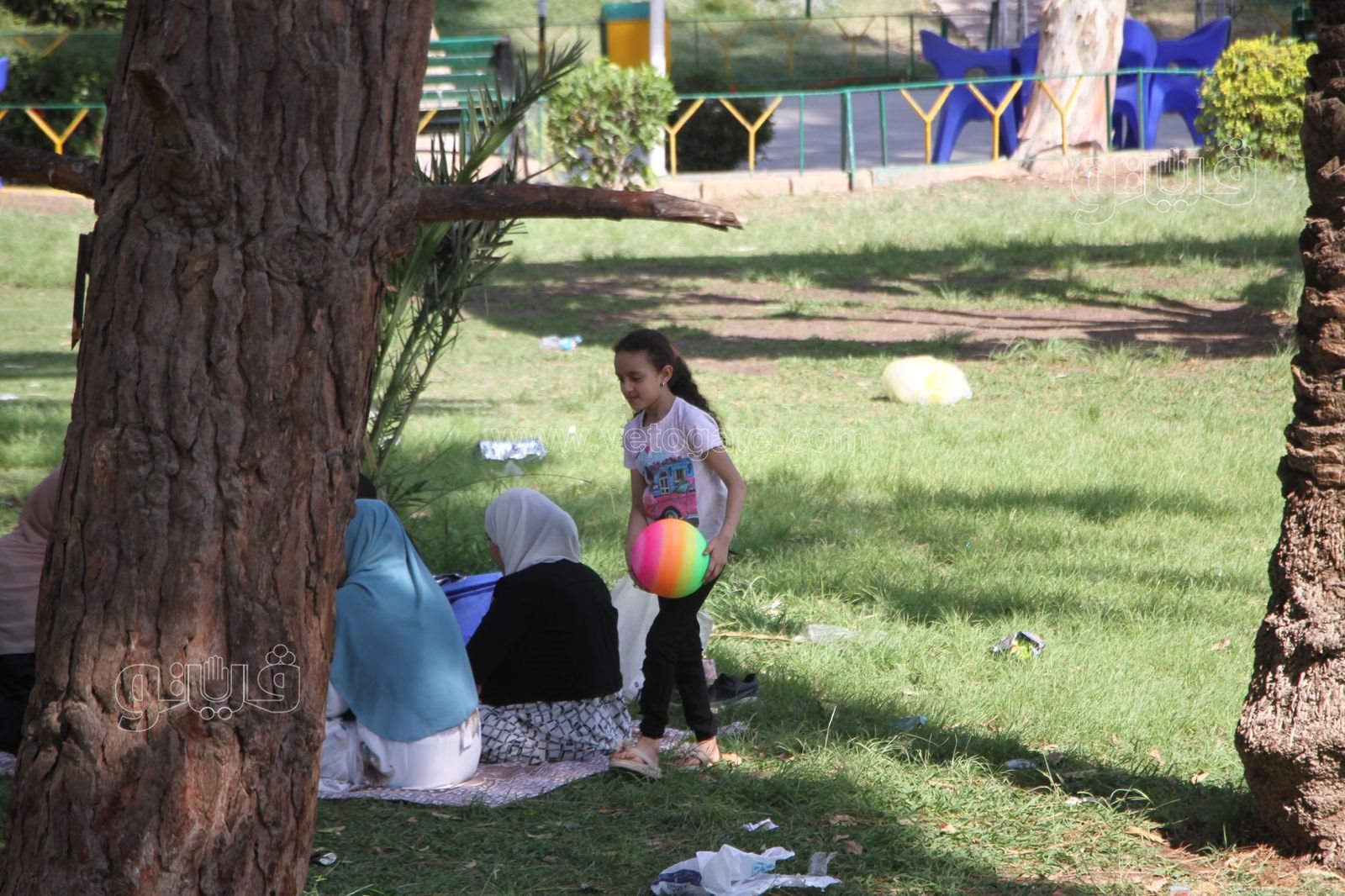 كما تصدرت العائلات المشهد في منتصف نهار اليوم الأول من عيد الأضحى حيث استمتعوا معًا بافتراش الأرض وتناول الأطعمة سويًا، بينما اختار الشباب اللعب "بالاسكيت" والكرة في ممرات الحديقة المتسعة.