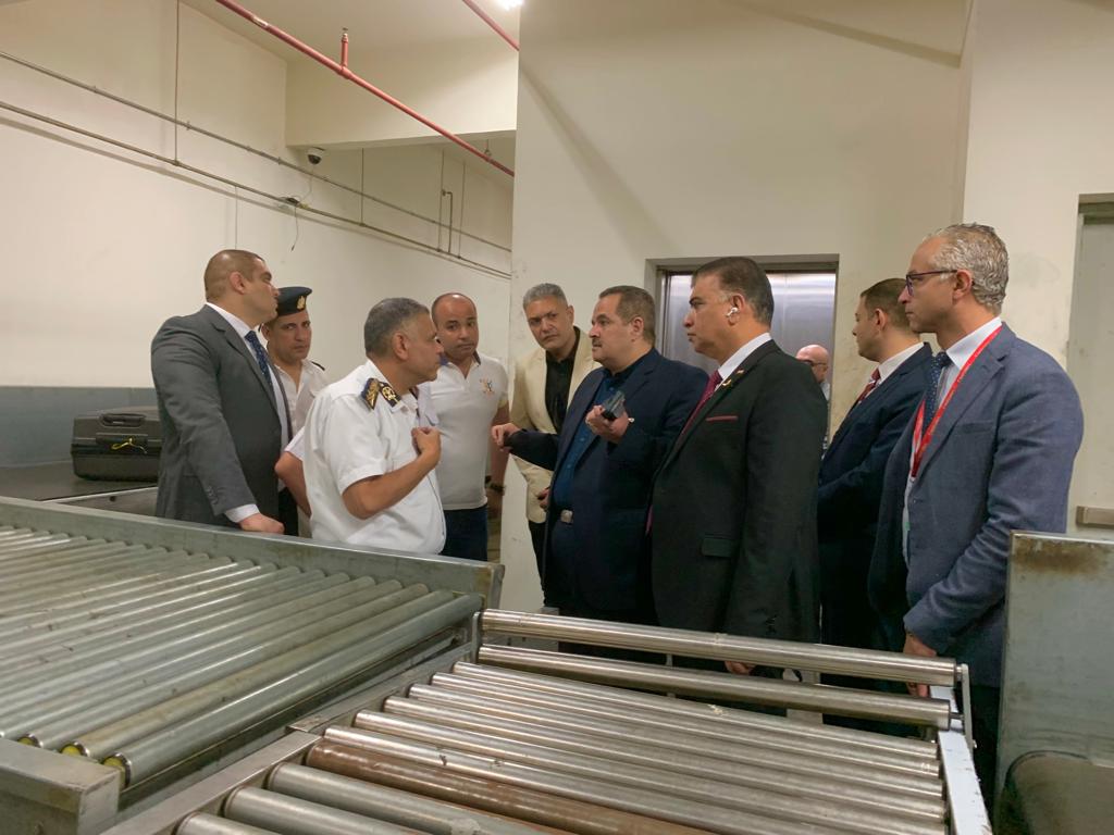 وخلال الزيارة قام بالمرور على مناطق الإجراءات بصالات السفر والوصول وتحميل الحقائب.