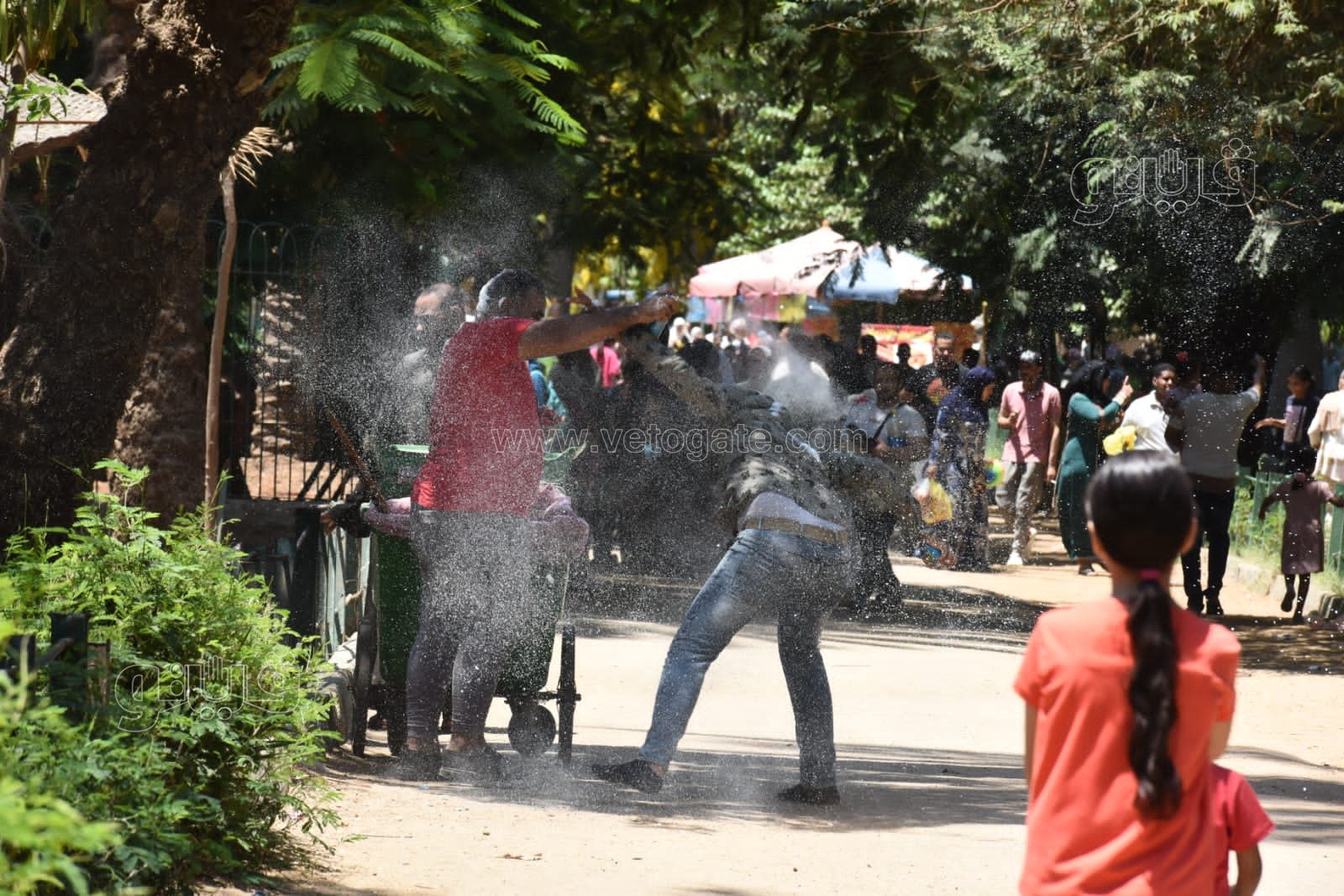 والتقطت كاميرا "فيتو" لعب العائلات بثلج الأفراح في حديقة الحيوان، حيث اتخذه الكبار والصغار كوسيلة للترفيه عن أنفسهم والمرح مع أحبائهم في ثاني أيام عيد الأضحى.