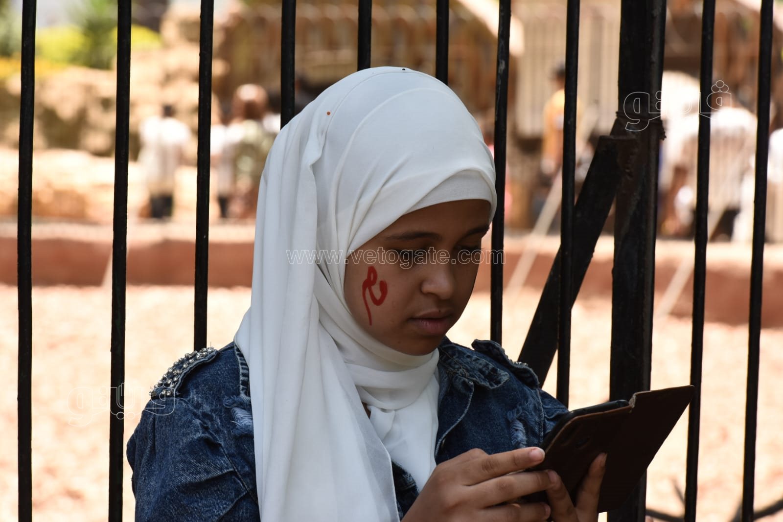 حيث رصدت عدسة "فيتو" طفلتان تتزينان بعلم واسم جمهورية مصر العربية في ثاني أيام عيد الأضحى بحديقة الحيوان بالجيزة.