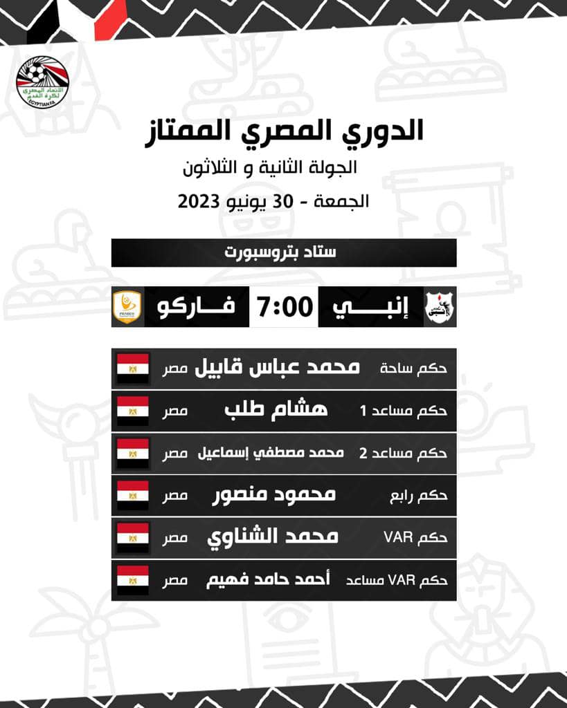حكام مباراة إنبي ضد فاركو
