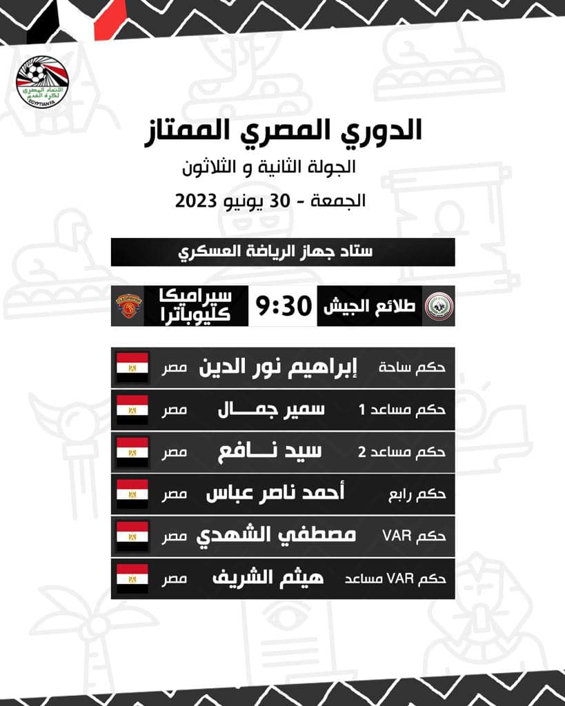 حكام مباراة طلائع الجيش ضد سيراميكا كليوباترا