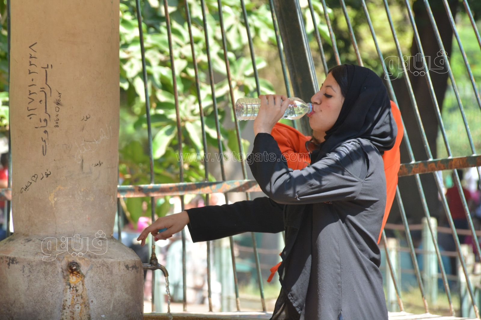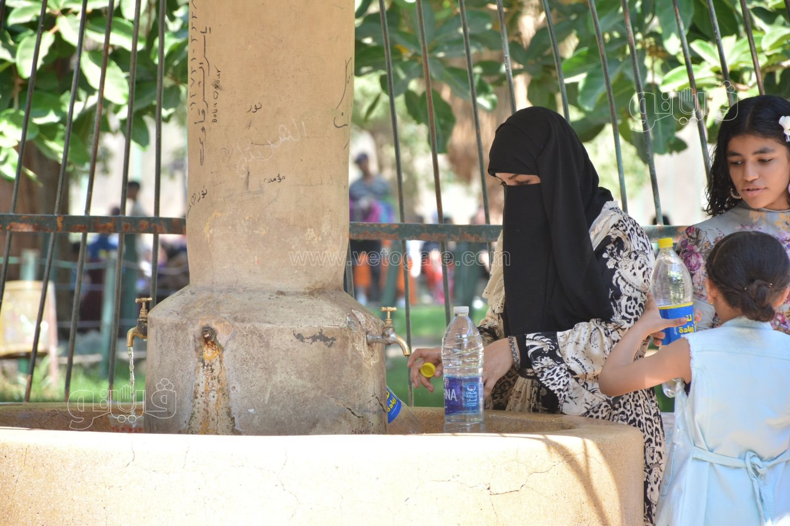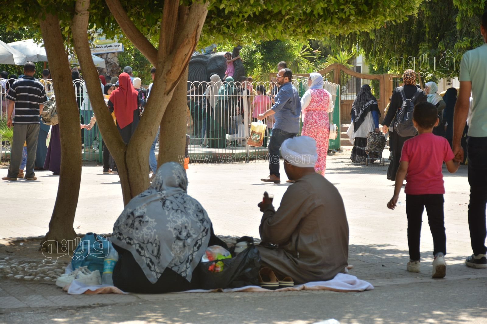 عيد الأضحي, لجأ زوار حديقة الحيوان بالجيزة إلى شراء المياة الباردة وارتداء الكابات لتكون عونًا لهم ضد درجات الحرارة المرتفعة وأشعة الشمس في ثالث أيام عيد الأضحى المبارك.