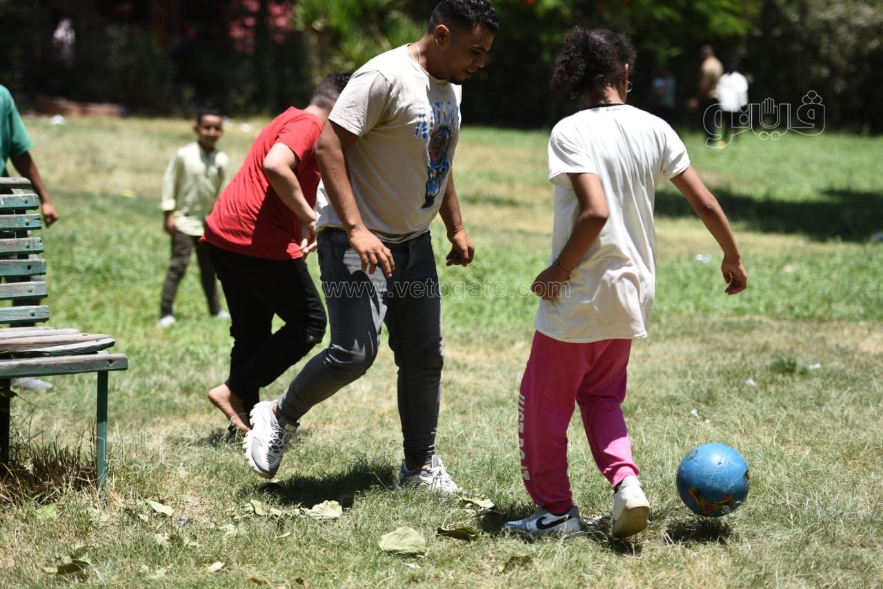 حيث التقطت عدسة "فيتو" عددا من العائلات أثناء لعبهم الكرة بالقناطر الخيرية في منتصف ثالث أيام العيد.