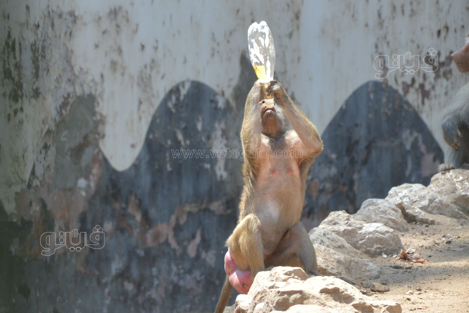وألتقطت كاميرا "فيتو" مشاهدا لزوار حديقة من صغار وكبار وحتى الحيوانات أثناء محاولتهم للاحتماء من حرارة الجو سواء بالاختباء تحت ظلال الأشجار أو شراء المياه الباردة والكابات.