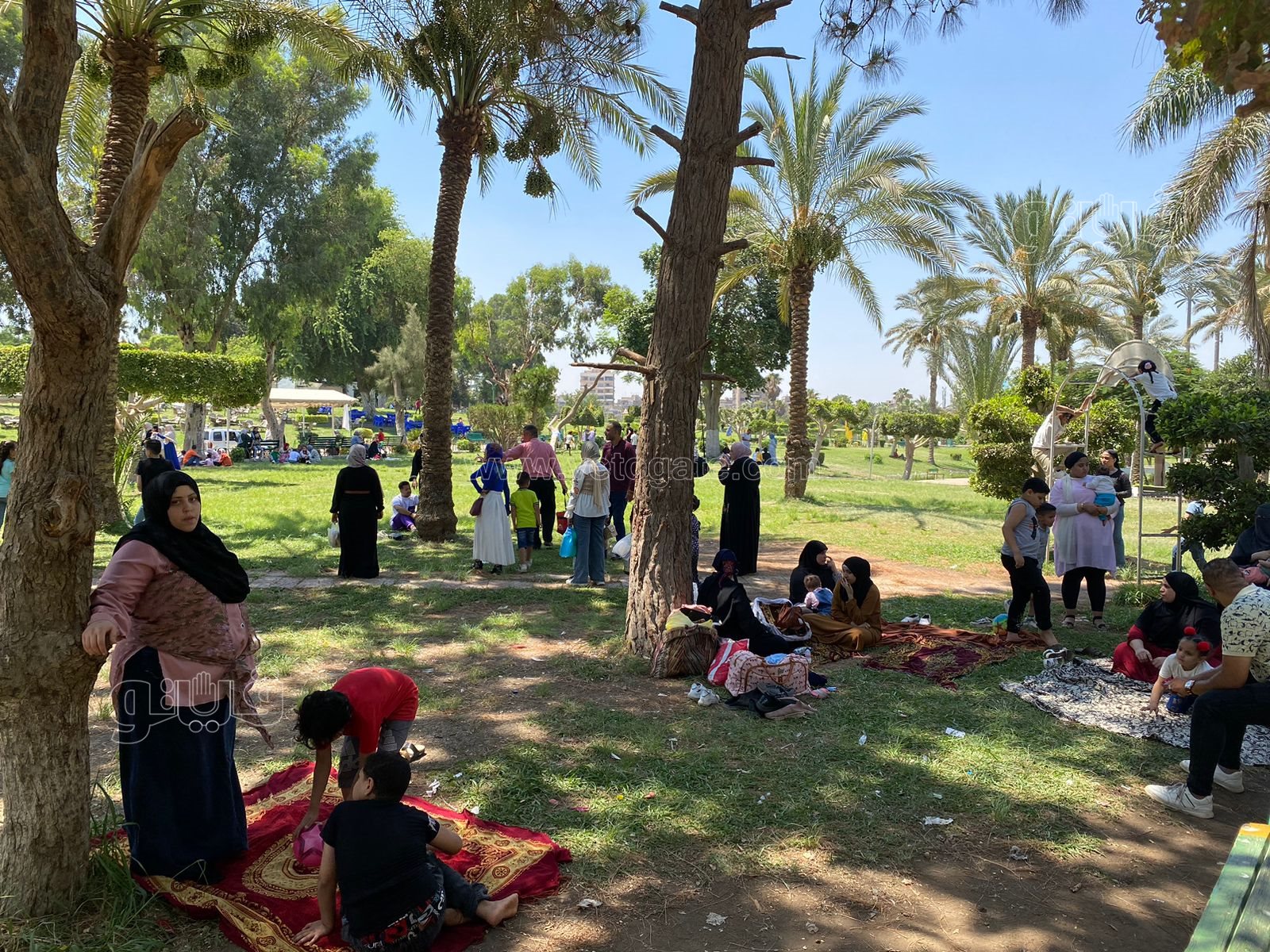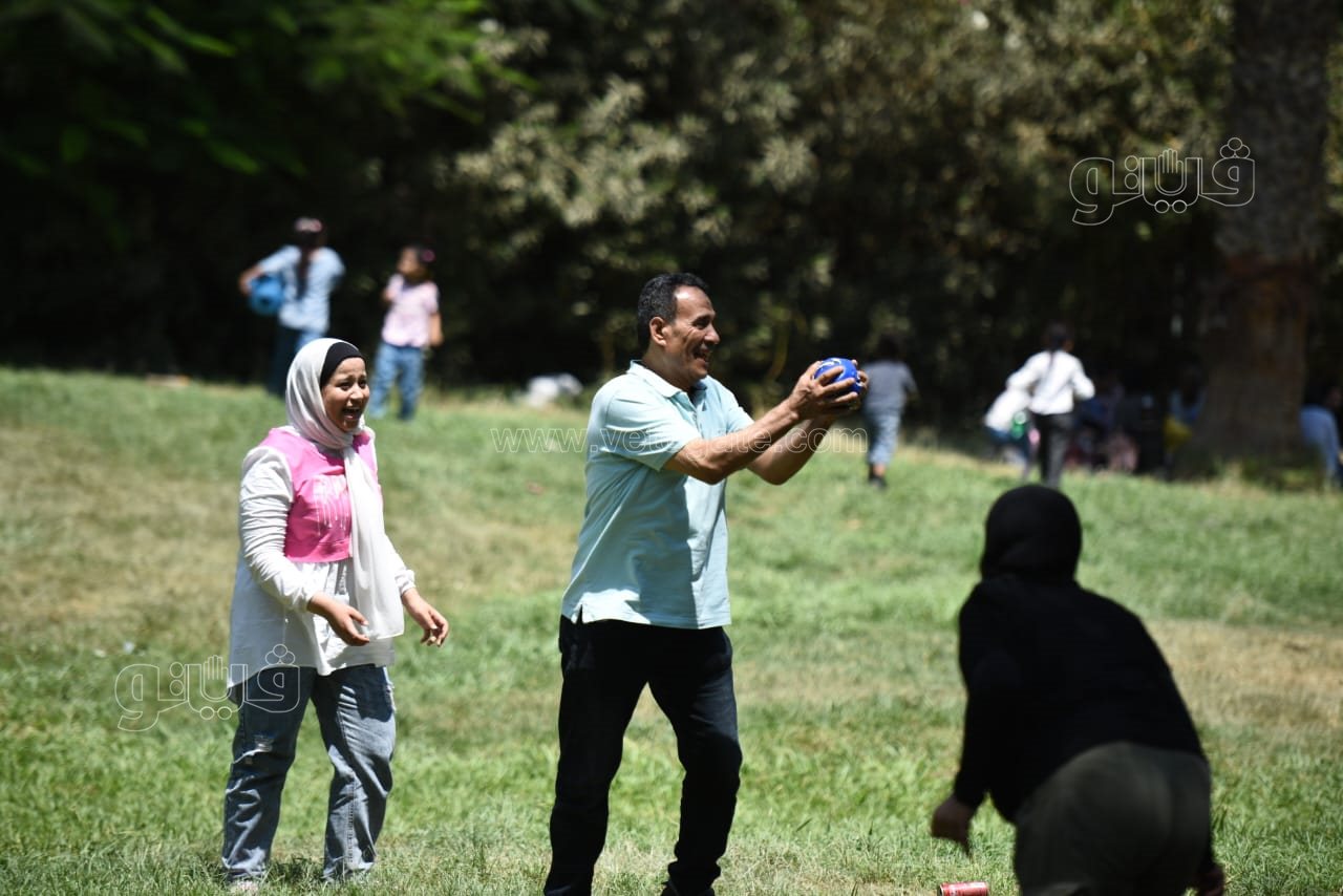 كما تصدرت العائلات المشهد في منتصف نهار أول أيام العيد حيث استمتعوا معًا بافتراش الأرض وتناول الأطعمة سويًا، بينما اختار الشباب اللعب "بالاسكيت" والكرة في ممرات الحديقة المتسعة.