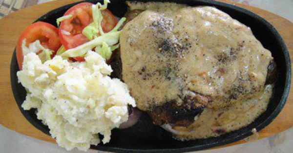 يقدم الطبق مع البطاطا المهروسة والخضار المسلوق