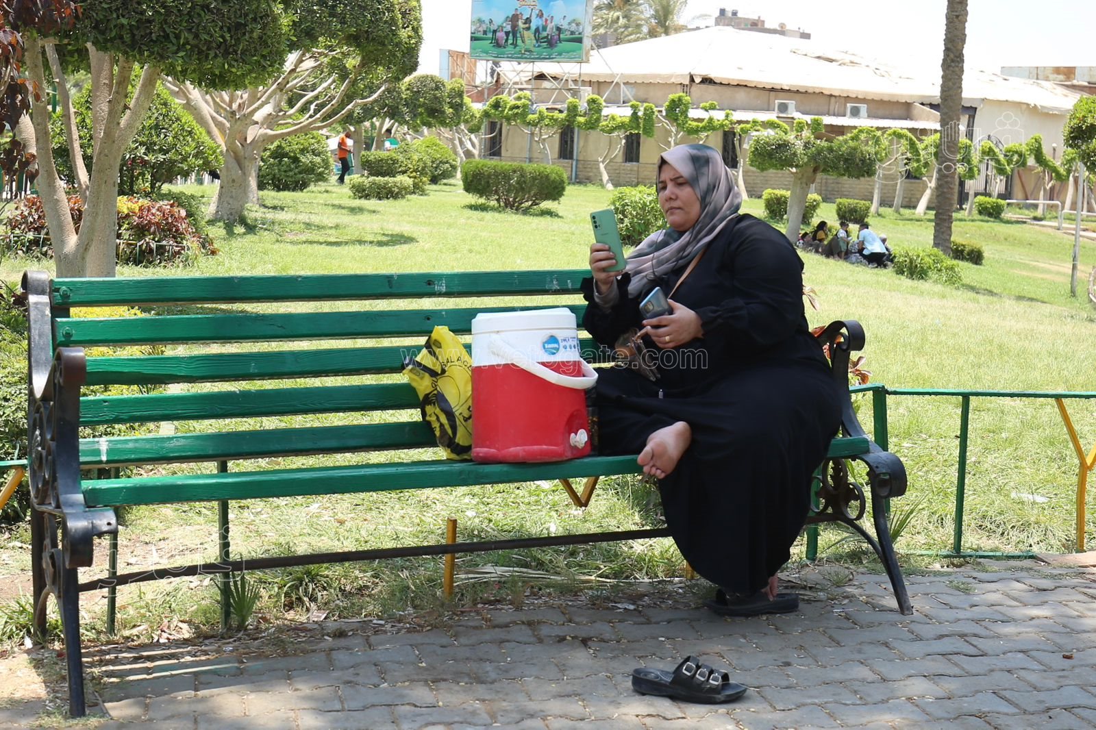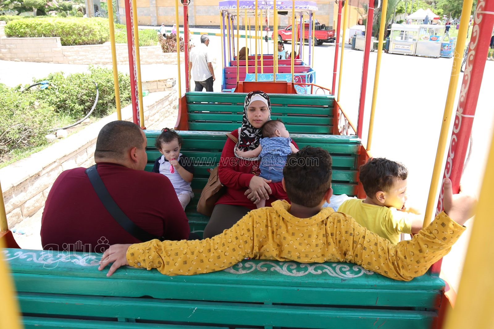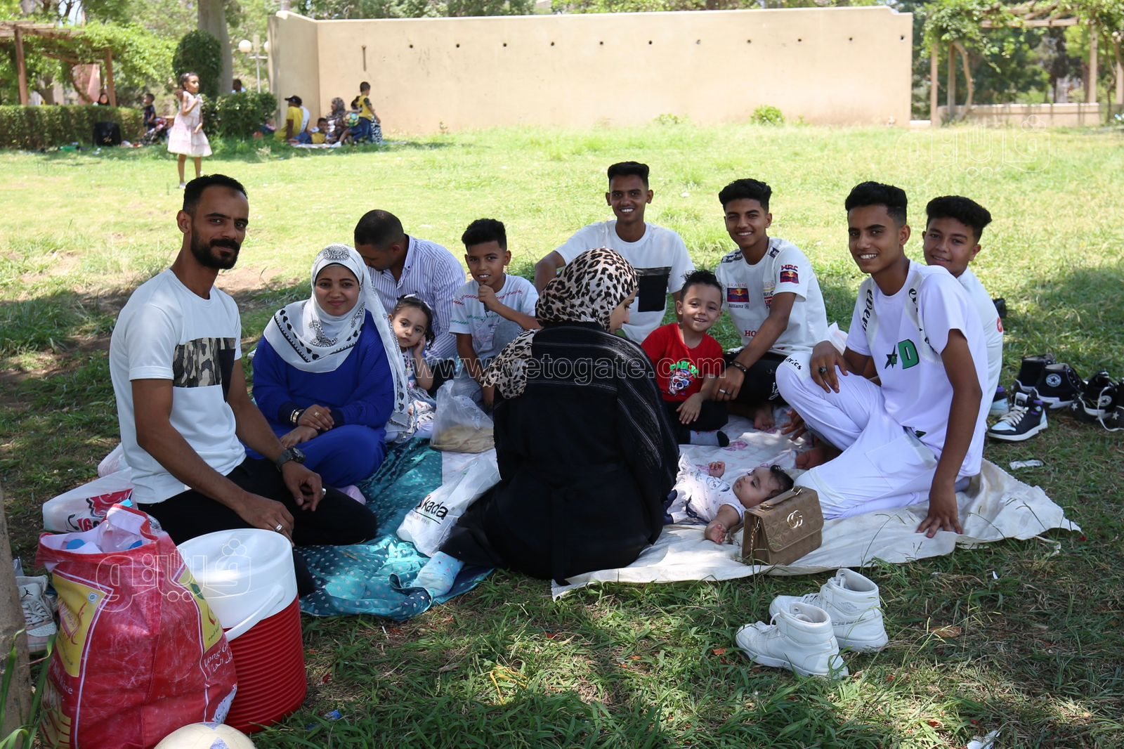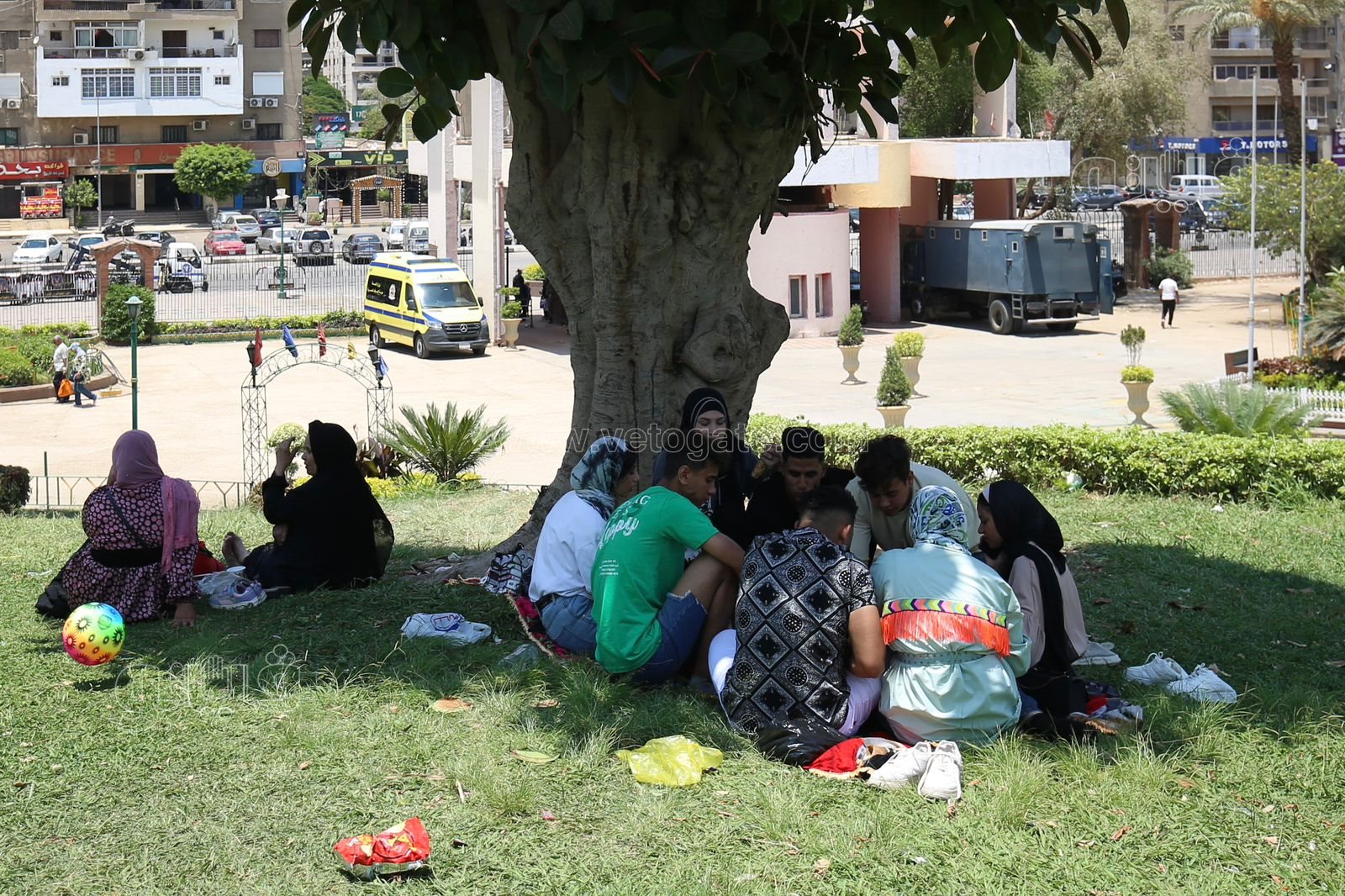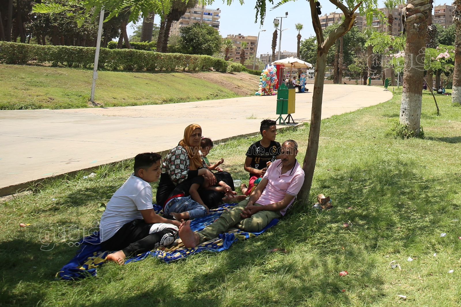 كما تصدرت العائلات المشهد في منتصف نهار أول أيام العيد حيث استمتعوا معًا بافتراش الأرض وتناول الأطعمة سويًا، بينما اختار الشباب اللعب "بالاسكيت" والكرة في ممرات الحديقة المتسعة