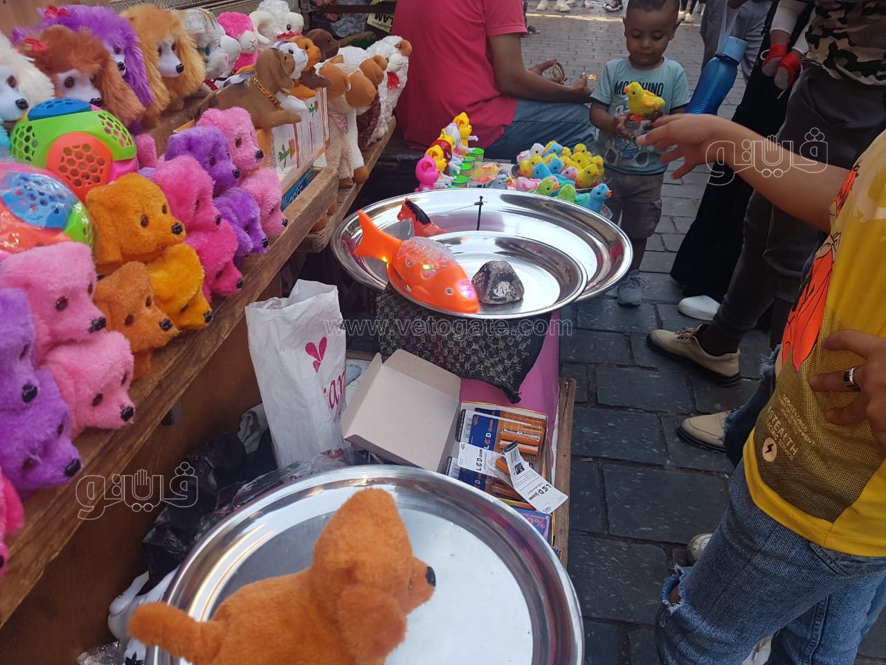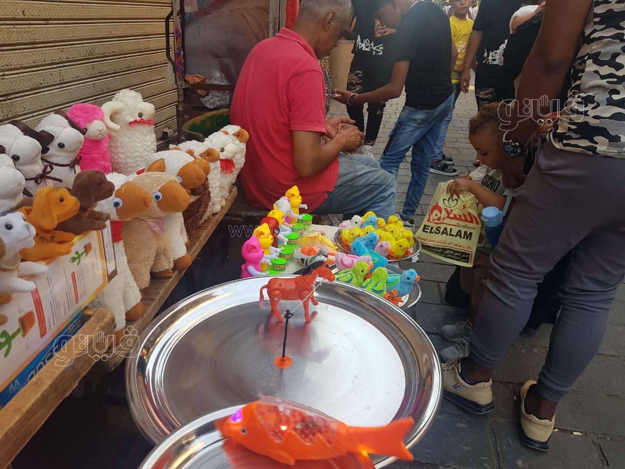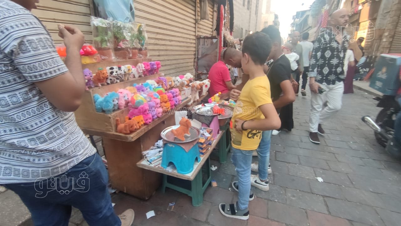 حرصت العائلات على اصطحاب أطفالهم لشارع المعز للاستمتاع بإجازة عيد الأضحى، حيث قام بعض الأطفال بشراء الألعاب من بائعي الألعاب الموجودين على جانبي شارع المعز.