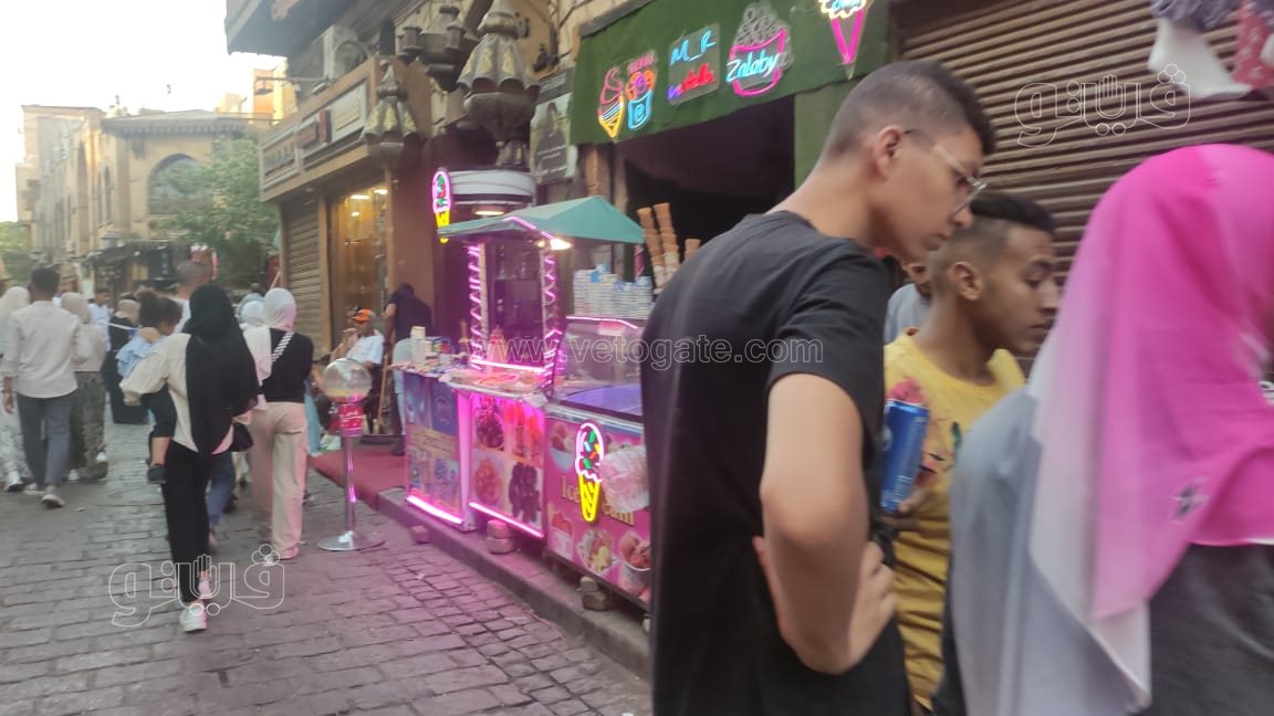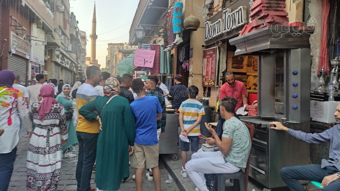 استمتاع زوار شارع المعز بالمأكولات السريعة في ثالث أيام عيد الأضحى (صور)