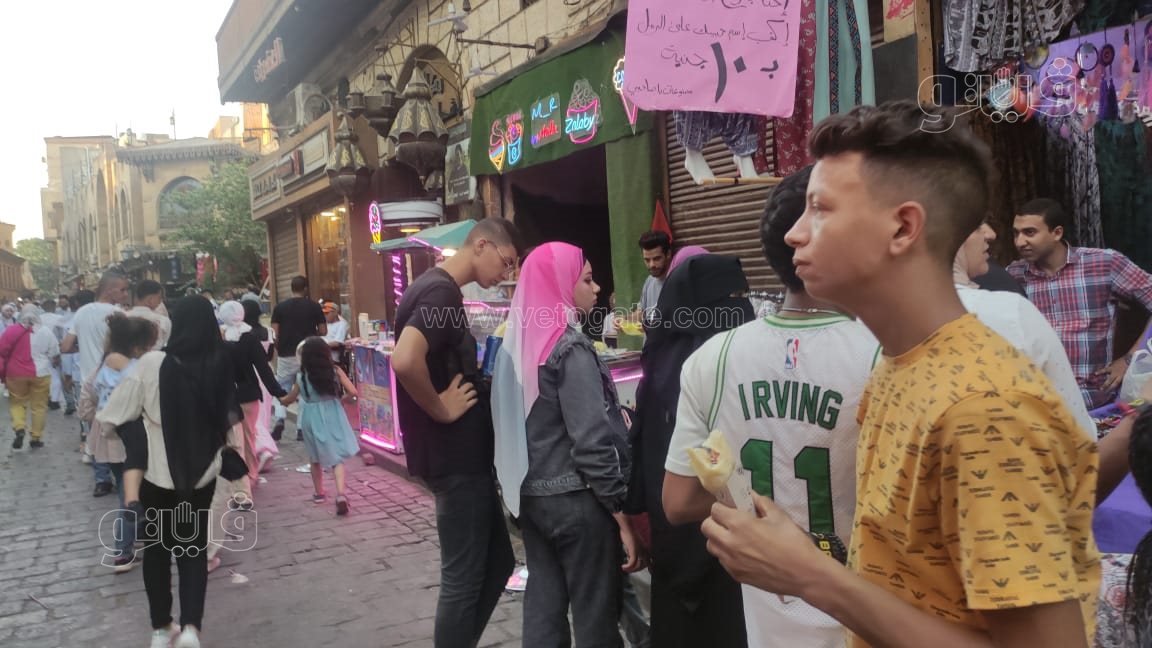 وشهد شارعا المعز والحسين إقبالًا كثيفًا في ثالث أيام عيد الأضحى في وسط جو حافل بالبهجة والسعادة.