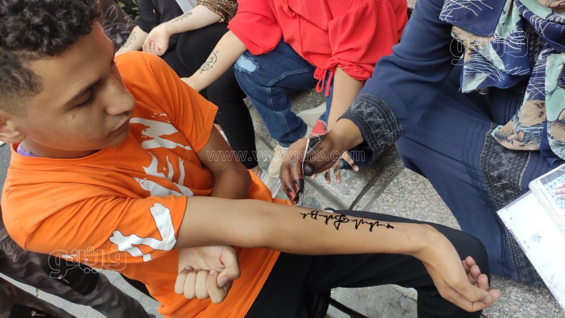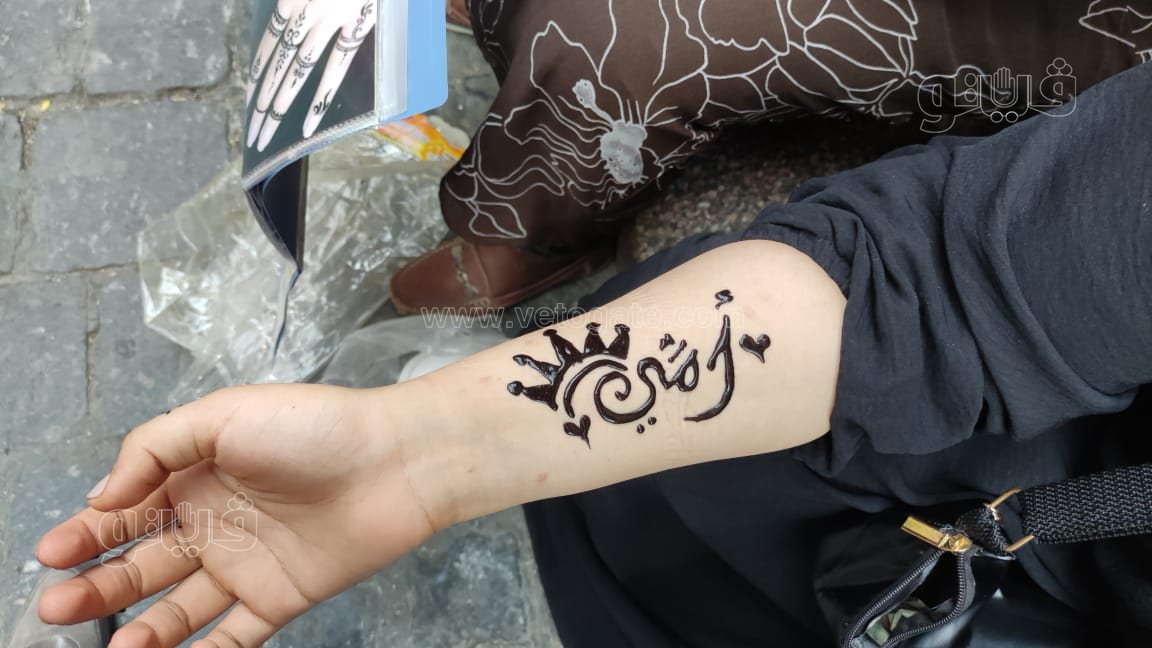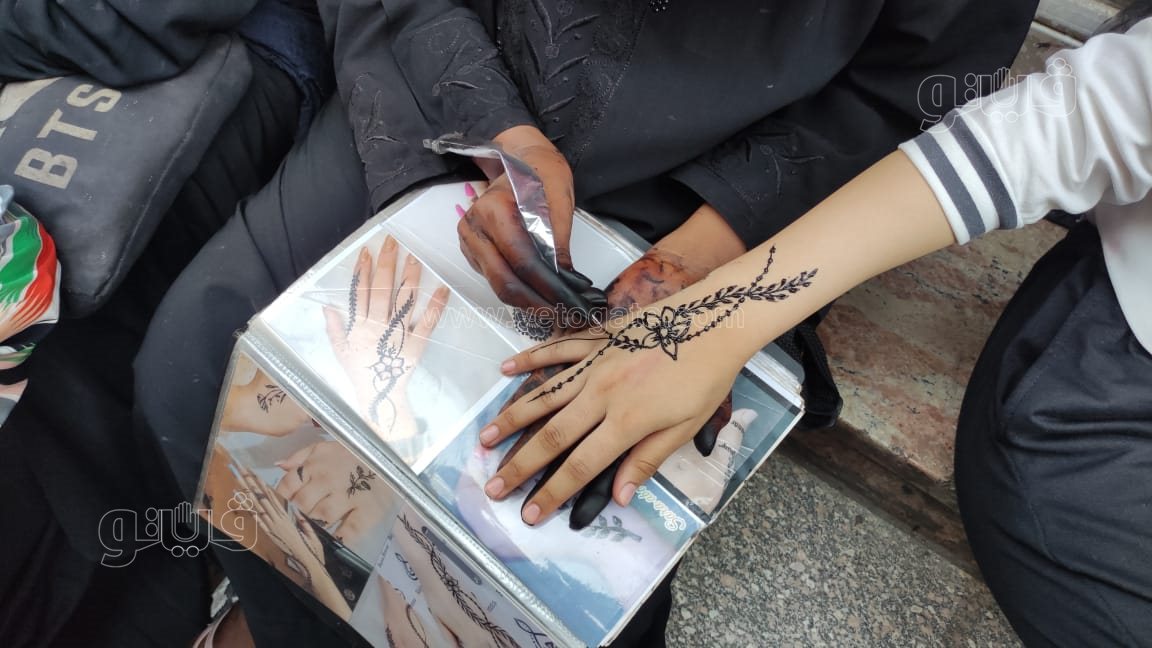 انتشرت السيدات التي تقوم برسم الحنة على أيادي البنات بشارع المعز، ولكن الحنة لم تعد حكرا على البنات فقط بل أصبحت تجذب الأولاد لتزين أيديهم بمختلف الرسومات.