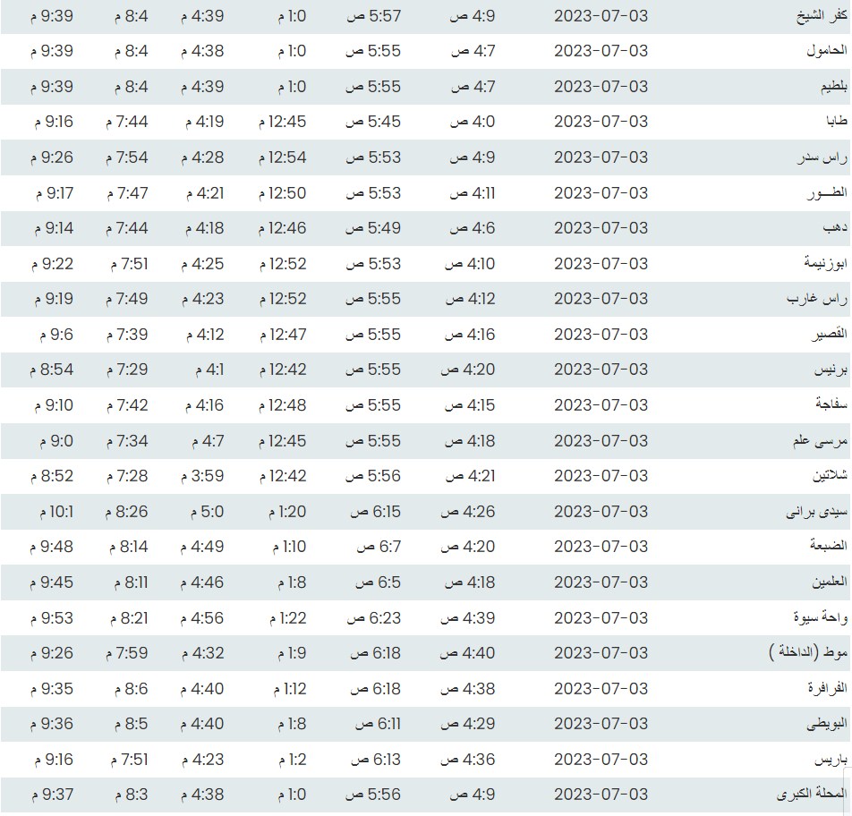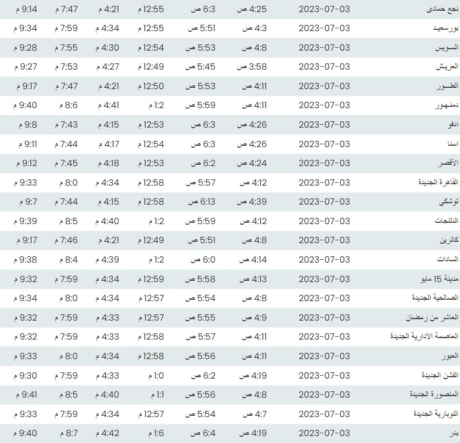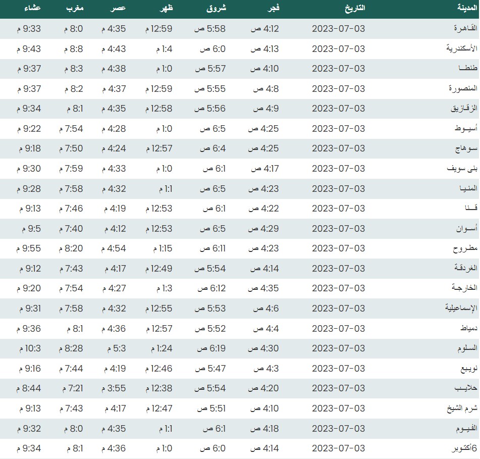 مواقيت الصلاة اليوم بتوقيت القاهرة
