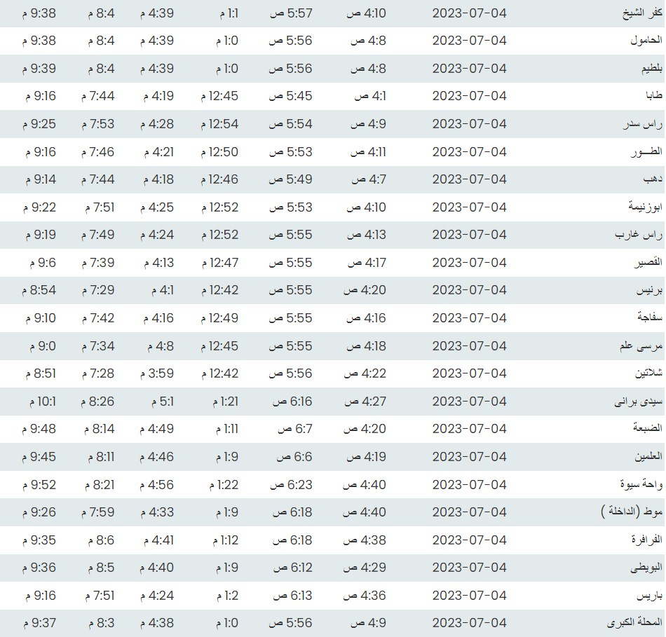 مواقيت الصلاة اليوم بتوقيت الإسكندرية
