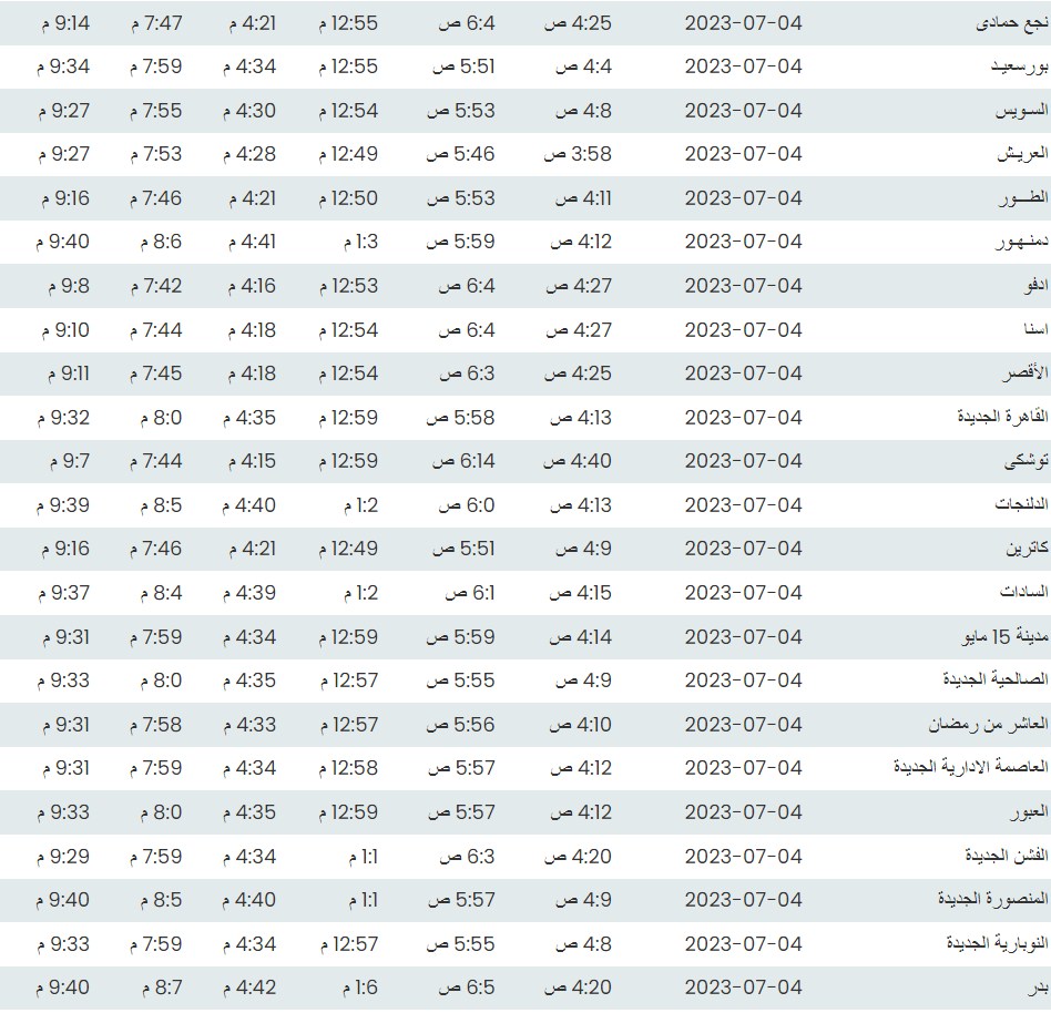 مواقيت الصلاة اليوم بتوقيت القاهرة