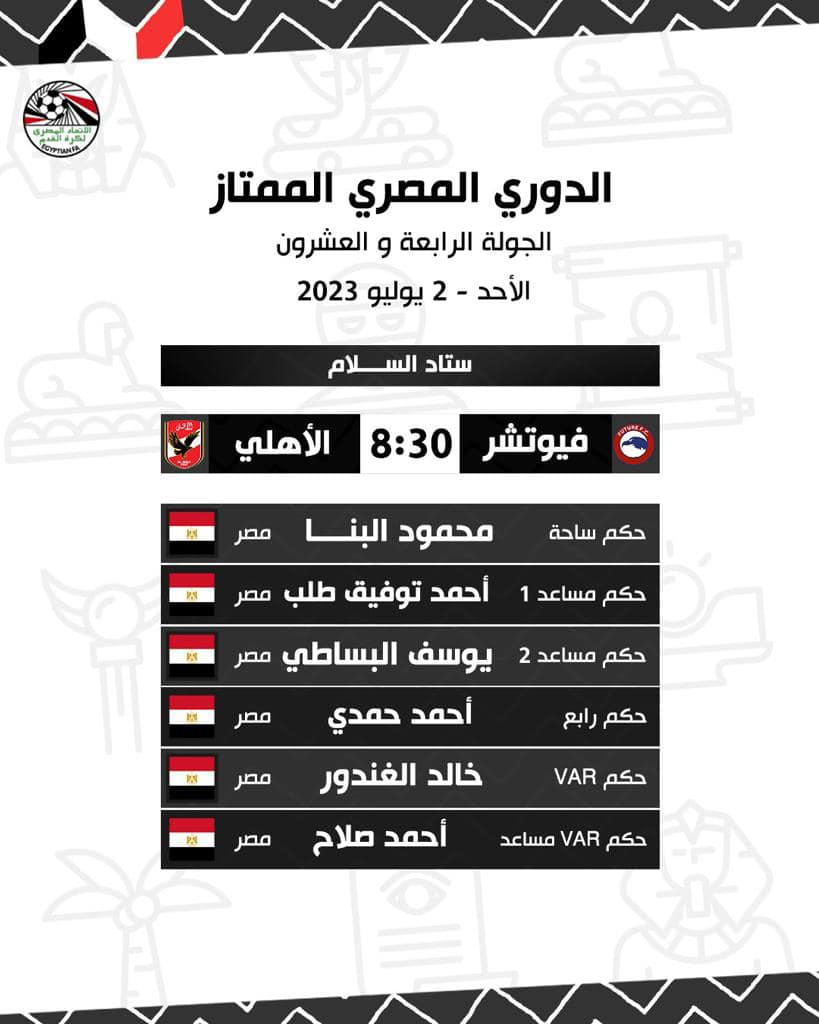 طاقم تحكيم مباراة الأهلي وفيوتشر
