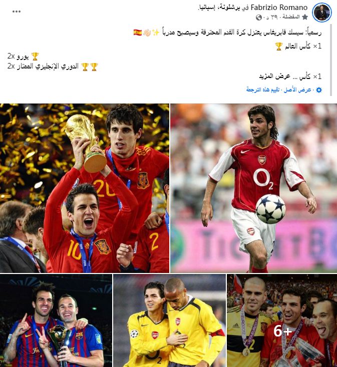 سيسك فابريجاس يعلن اعتزاله كرة القدم ويتجه للتدريب