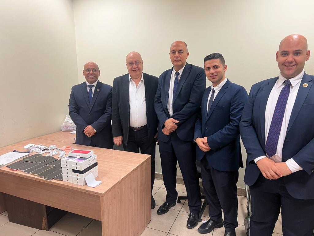 فقام مدير الجمرك بتكليف كل من مصطفي فريد وخالد حسام ماموري الجمرك بتفتيشهما تحت إشراف عمرو عبد العزيز العميري مدير الحركة فوجد بحوزتهما خمسة تليفونات أخري أقرا أنهما حاولا الخروج بهم وتسليمهم لنفس الراكب خارج الدائرة الجمركية، كما تأكد لمدير الجمرك أنهم بنفس الأرقام المسلسلة الموجودة بالفواتير حوزة الراكب، وقامت شيرين كمال الدين مأمور الجمرك بتحرير استمارة الجرد وتحريز المضبوطات.