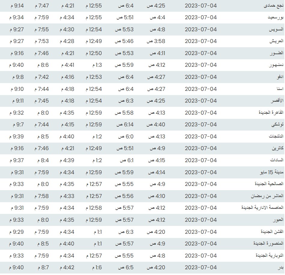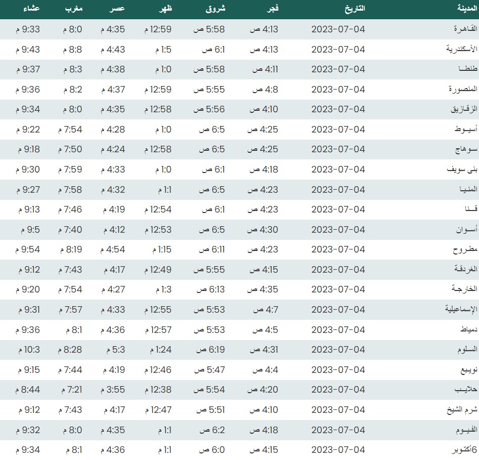 مواقيت الصلاة اليوم بتوقيت القاهرة