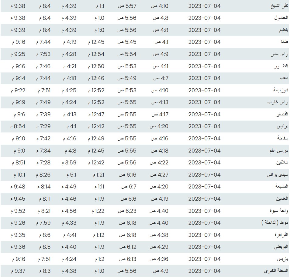 مواقيت الصلاة اليوم بتوقيت الإسكندرية