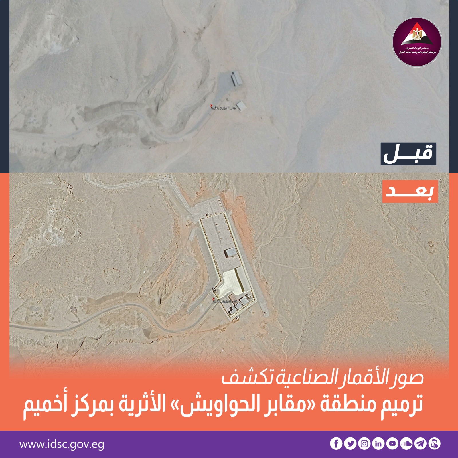نشرت الصفحة الرسمية لـ مركز المعلومات ودعم اتخاذ القرار بمجلس الوزراء صورًا بالأقمار الصناعية لمشروع ترميم مقابر الحواويش، والتي تهدف إلى الحفاظ على التراث الثقافي والتاريخي لمصر وإعادة تأهيل المنطقة للاستخدام السياحي.