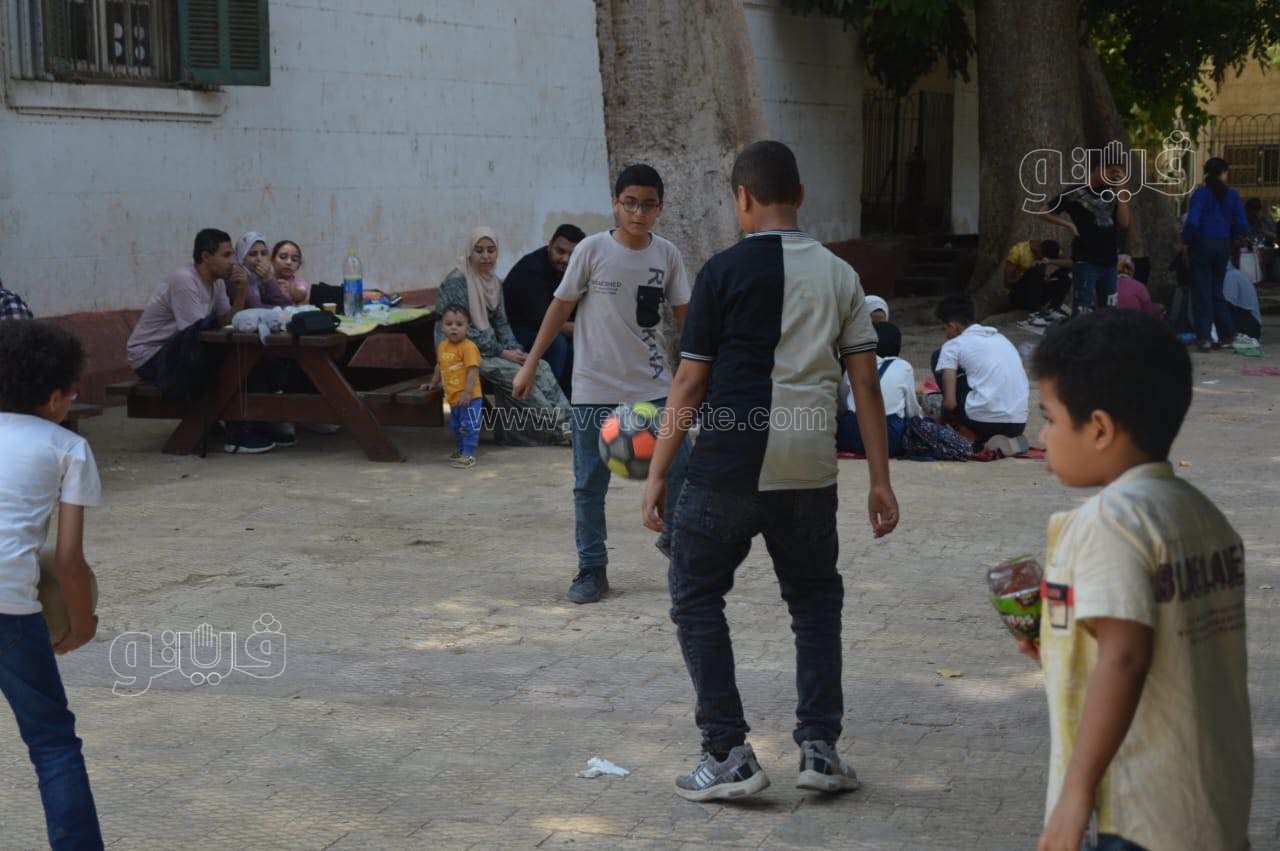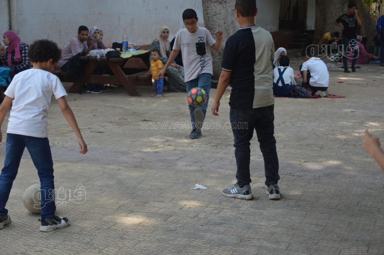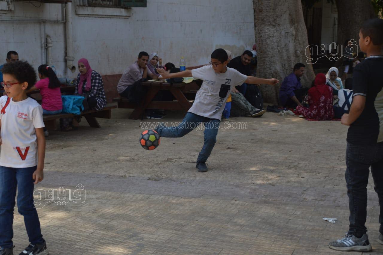 تصدر اللعب بكرة القدم والسلة المشهد في حديقة الحيوان حيث استغل الأطفال المساحات الشاسعة للعب بها والاستمتاع بالإجازة قبل نهايتها.