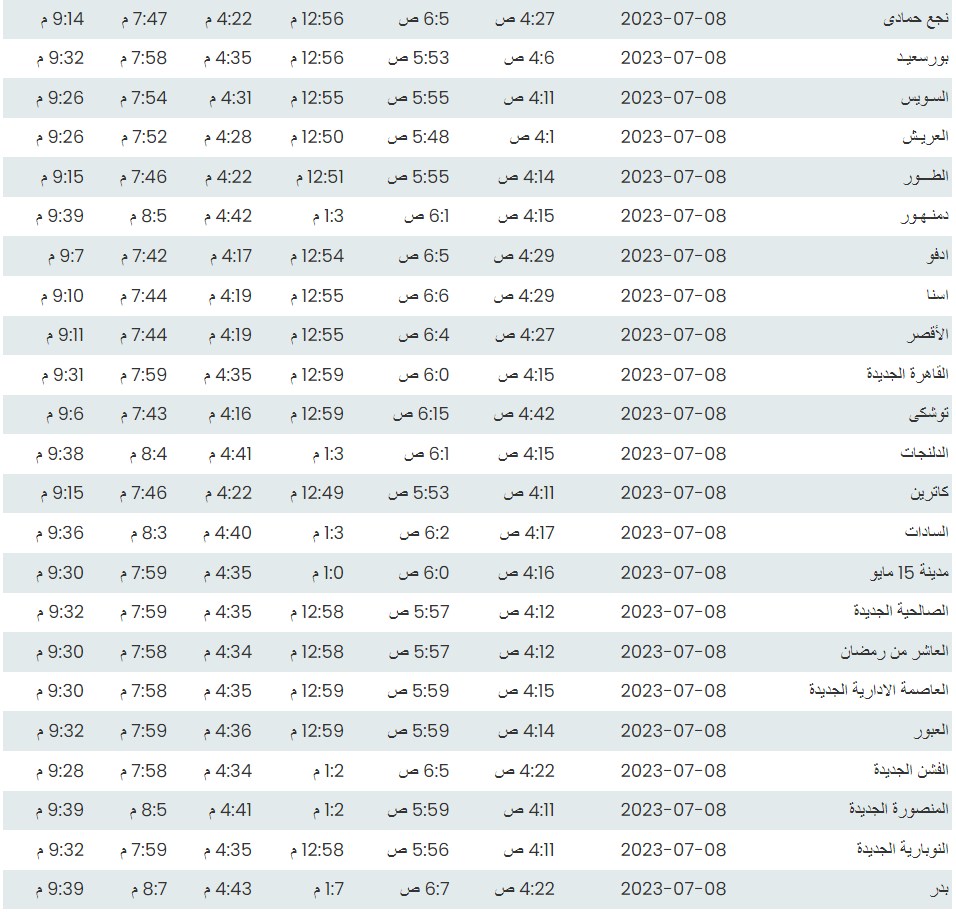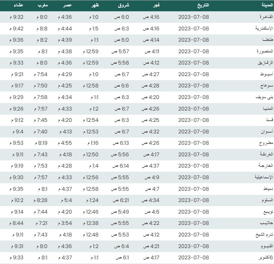 مواقيت الصلاة اليوم بتوقيت القاهرة