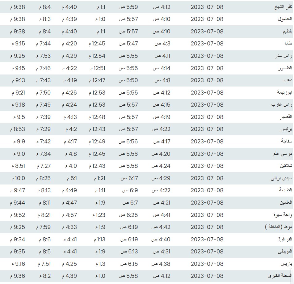 مواقيت الصلاة اليوم بتوقيت أسيوط
