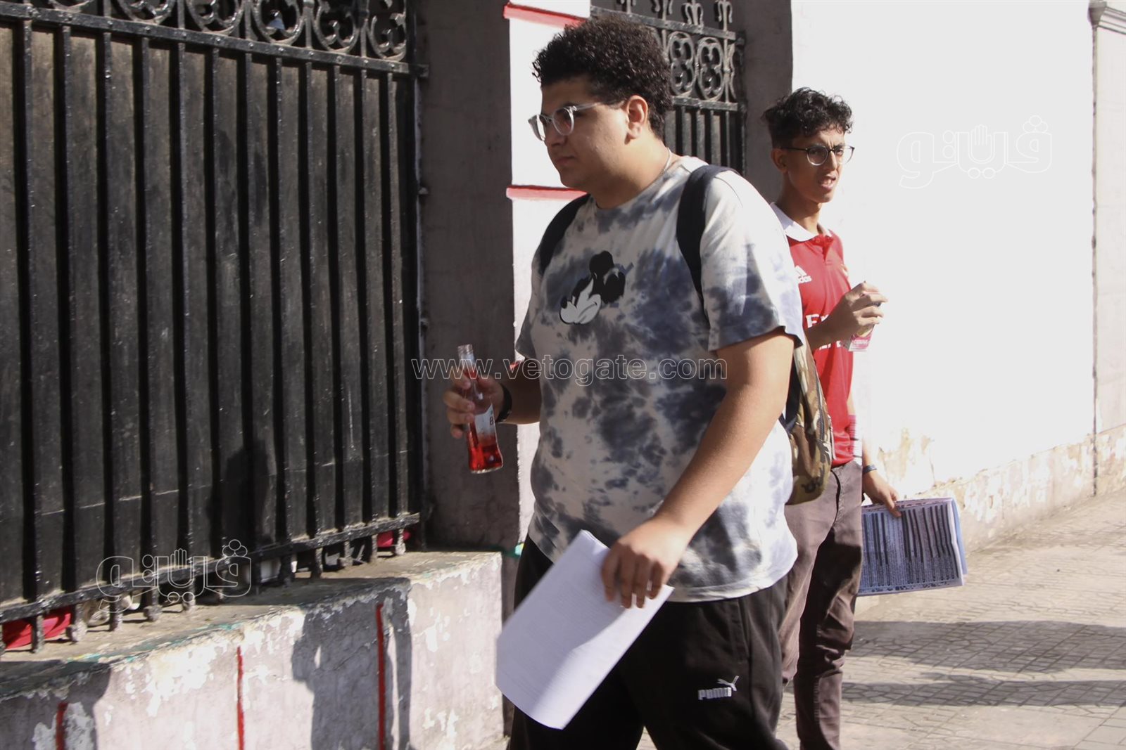 وحرص طلاب الثانوية العامة 2023 على المراجعة النهائية أمام المدرسة قبل الدخول للجنة لأداء امتحان مادة الاستاتيكا.