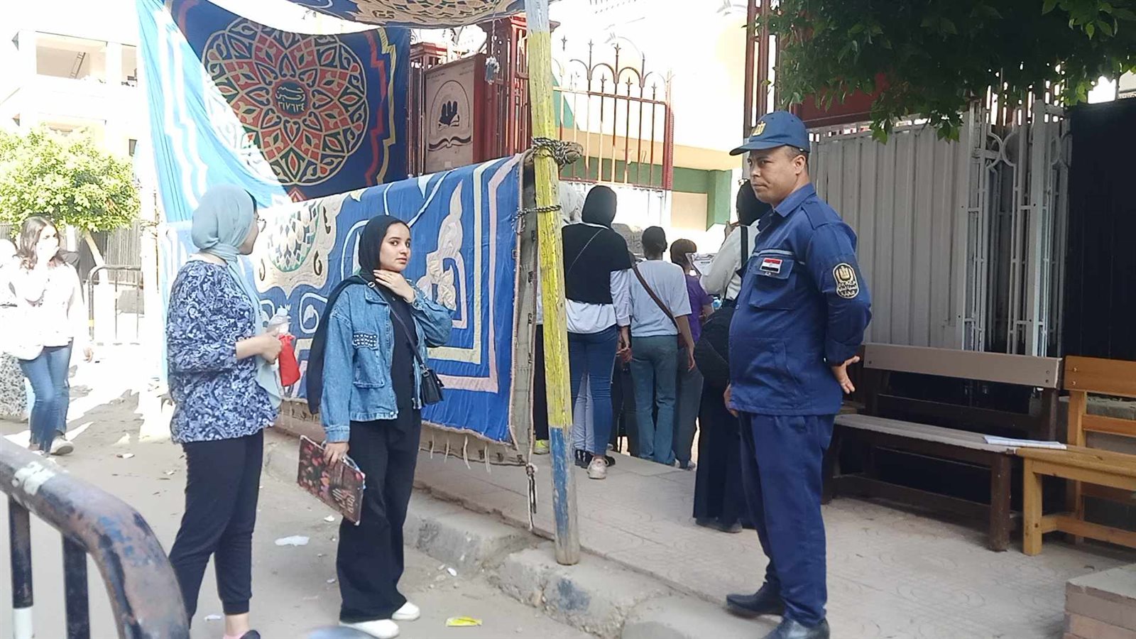 وبدأ دخول الطلاب والطالبات وخضع ا جميعا للتفتيش علي أبواب اللجان لتأكد من عدم اصطحاب الموبيلات داخل اللجان.
