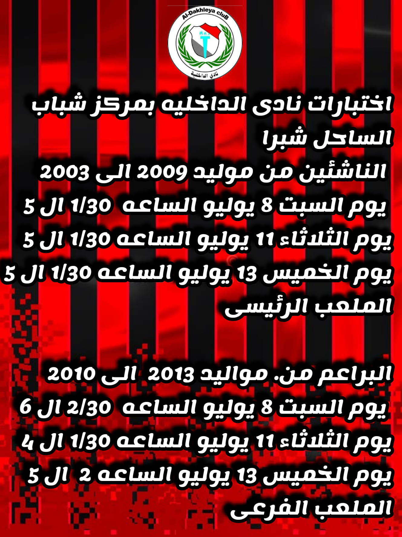 موعد اختبارات الناشئين بنادي الداخلية 2023 بمركز شباب الساحل