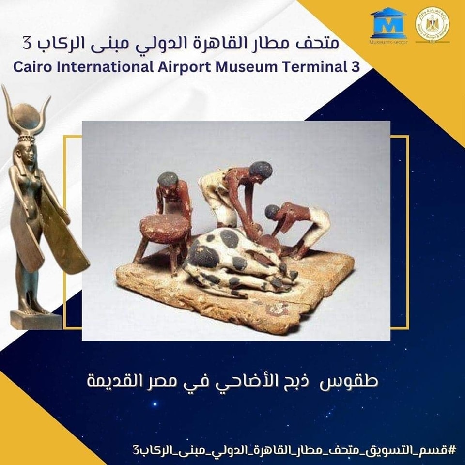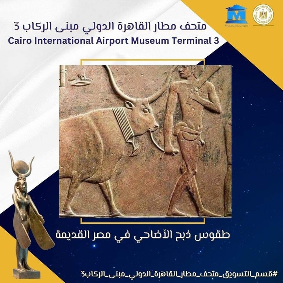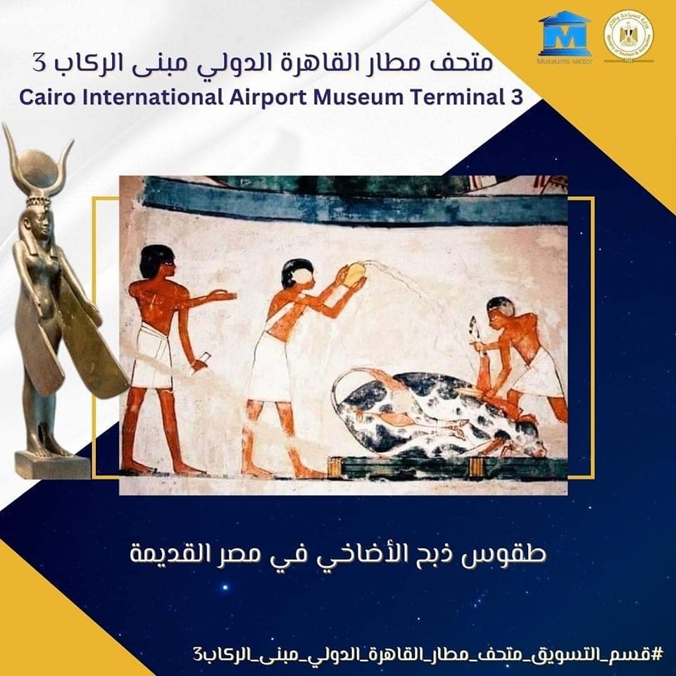 عرضت الصفحة الرسمية لمتحف مطار القاهرة الدولي بمبني الركاب رقم 3، عدد من طقوس ذبح الأضاحي في مصر القديمة.